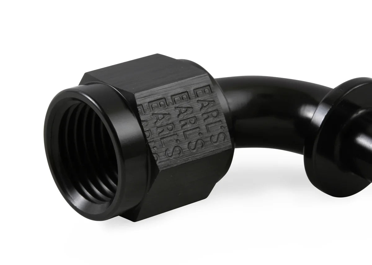 | Description_MKT | Earl's Vapor Guard hose ends feature a special smooth retention bead that retains the hose under pressure while assuring the hose liner is not damaged. They're black brite-dip anodized for good looks and corrosion protection. Assembly is a snap! Simply cut the hose, push it on and tighten the clamps! Put Earl's Vapor Guard™ in your arsenal and defend your ride from modern fuels! |