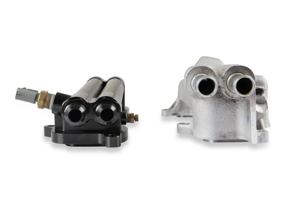 | Description_EXT | Fits 2015 & Up Gen III Hemi 6.2L Hellcat Engines. 1.875" Shorter than the factory Manifold for Extra Firewall Clearance. -10 Female O-Ring Port Inlet & Outlet. |