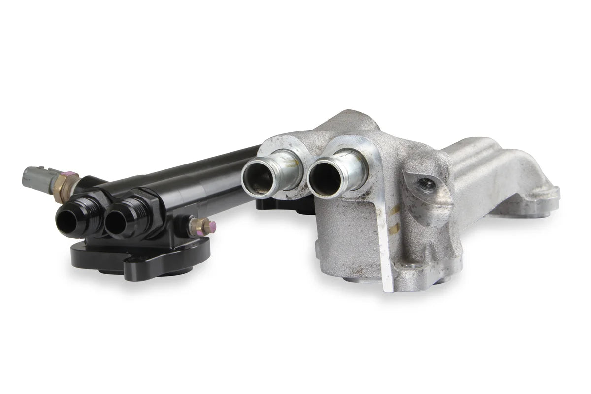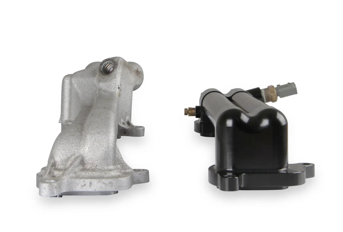 | Description_MKT | The Supercharged Gen III Hemi engine has a relatively large intercooler manifold on the back of the supercharger. The factory manifold may cause clearance issues in an engine swap into a classic muscle car or truck. The Earl's manifold is shorter and provides an additional 1.875" of clearance and allows the use of AN hoses for the coolant. Billet aluminum construction with black anodized finish. |
