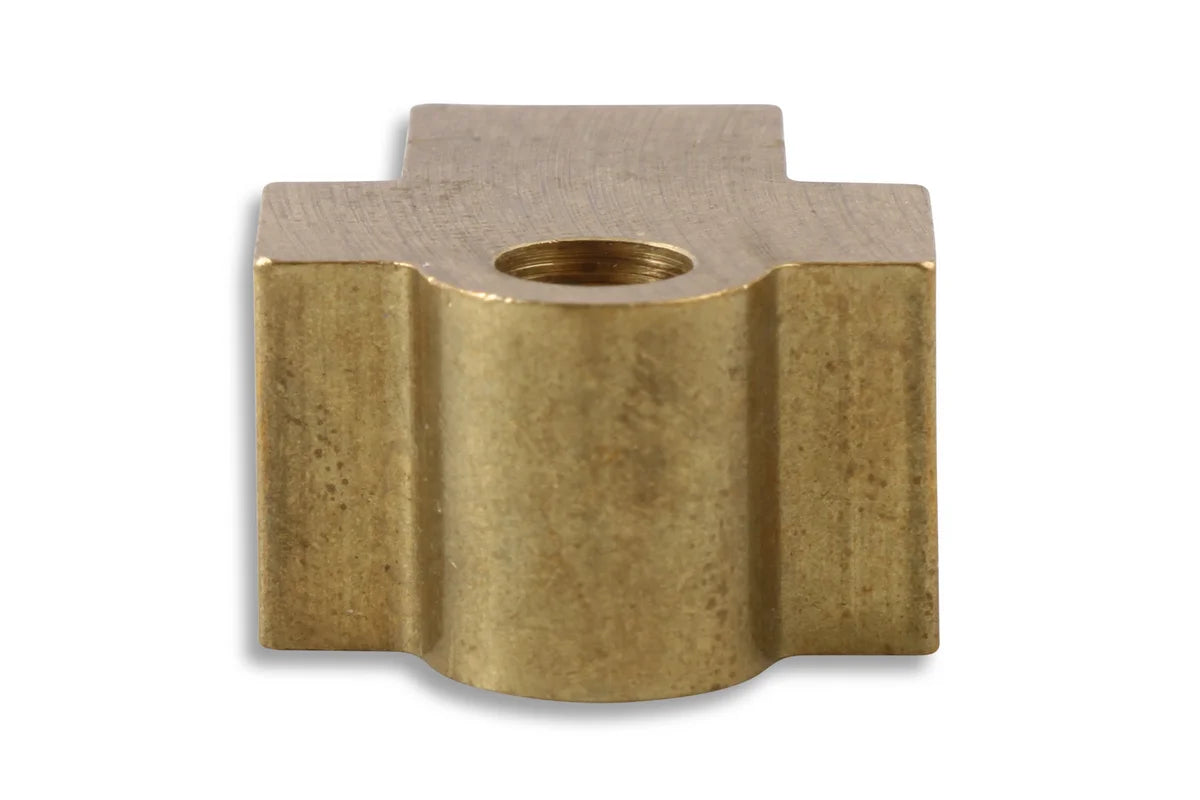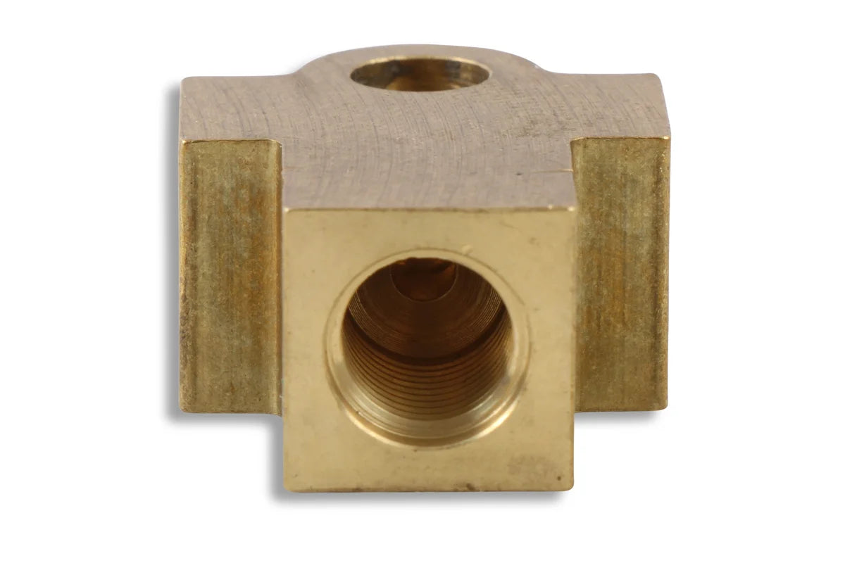 Description_EXT | Brake Adapter Tee Thread Size GM 3/8"-24 Inverted Flare On Sides 3/8"-24 Straight Thread On Branch, 1/4" Mounting Hole 1 Per Package Brass |
