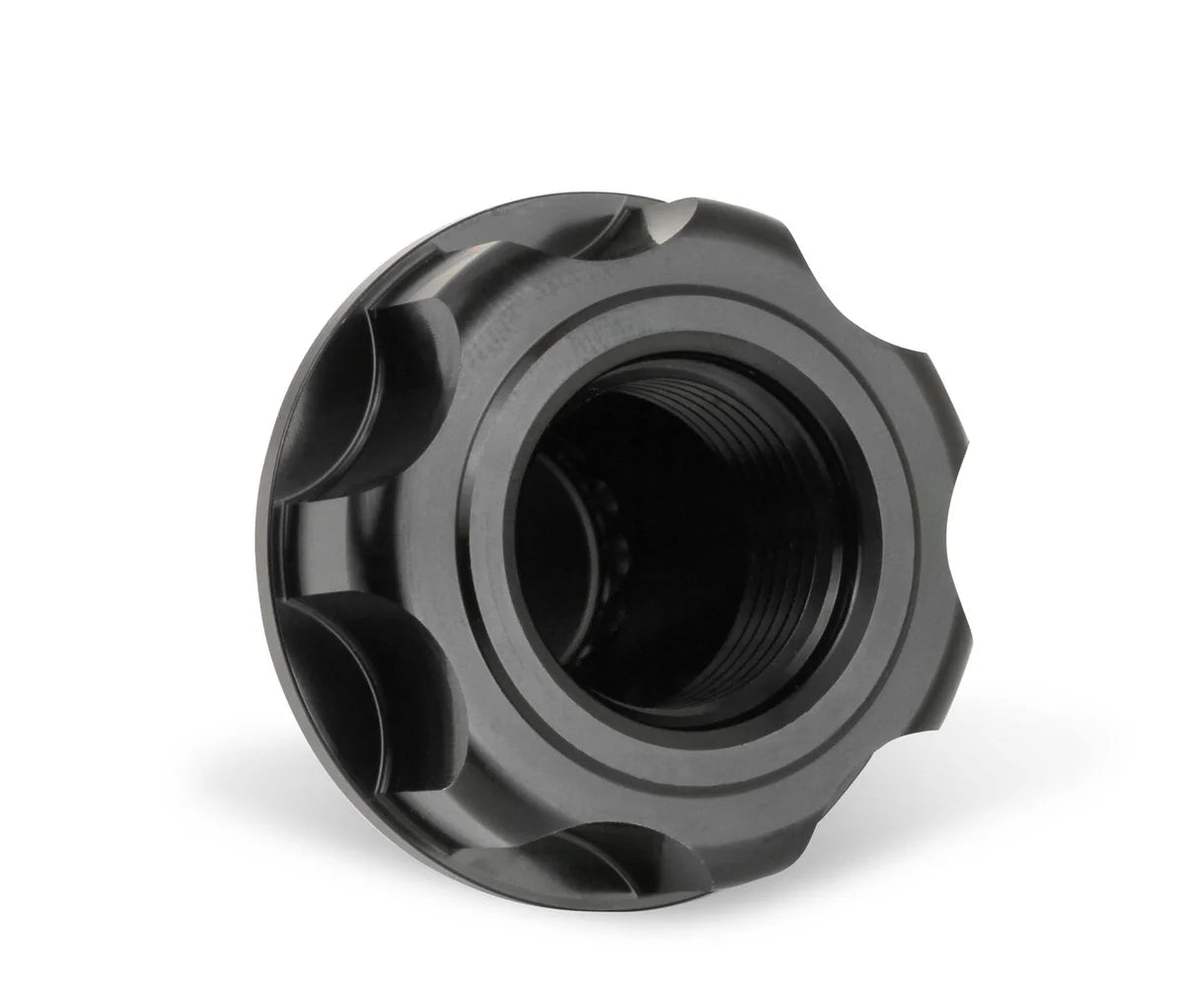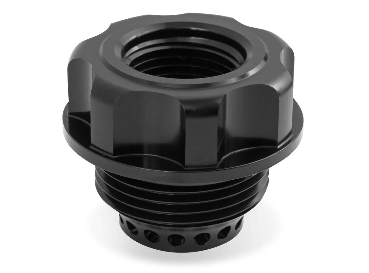 Description_MKT | These late model valve cover fill caps screw into the valve cover like an ordinary cap. These caps feature a baffle & -10 ORB (7/8"-14 Straight Thread O-Ring Style Port) for use w/ AN O-Ring Fitting (or Port hose end) & AN hose to the catch tank or PCV. These caps eliminate the need to modify your valve covers when adding a catch tank to your racing engine (required by most sanctioning bodies in racing applications). Choose from two versions w/ one that fits factory valve covers (GM LS, GM Gen-V LT, & Ford Coyote), and the second version that fits Holley Cast Aluminum GM LS Valve Covers. Billet aluminum construction w/ black anodized finish. Use w/ ORB (O-Ring Port) hose end AT849010ERL, or O-ring Port to AN Flare Adapter AT985010ERL (straight), or AT949010ERL (90 Degree) & AN hose to the Catch Tank. |