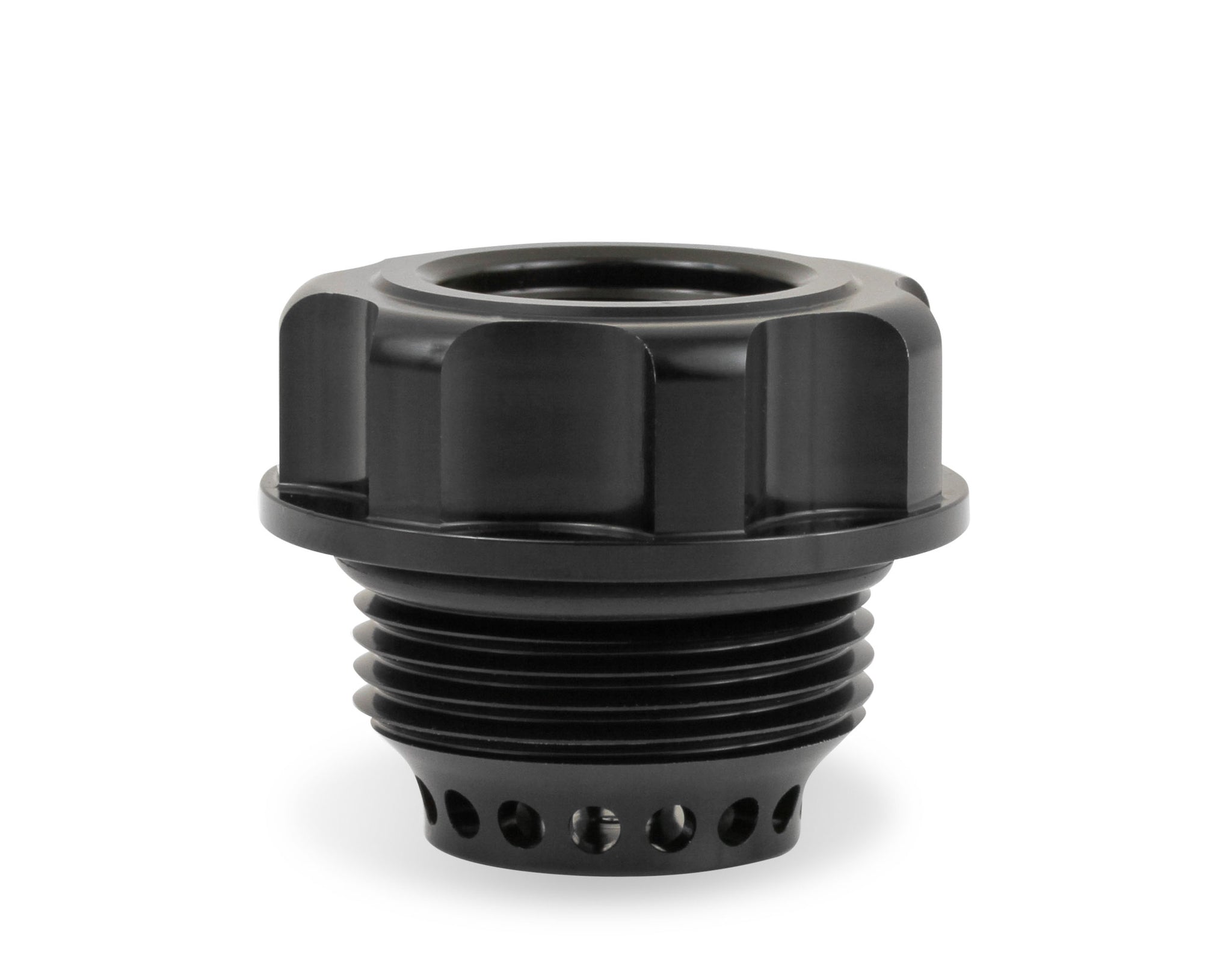 Description_MKT | These late model valve cover fill caps screw into the valve cover like an ordinary cap. These caps feature a baffle & -10 ORB (7/8"-14 Straight Thread O-Ring Style Port) for use w/ AN O-Ring Fitting (or Port hose end) & AN hose to the catch tank or PCV. These caps eliminate the need to modify your valve covers when adding a catch tank to your racing engine (required by most sanctioning bodies in racing applications). Choose from two versions w/ one that fits factory valve covers (GM LS, GM Gen-V LT, & Ford Coyote Gen1-Gen2), and the second version that fits Holley Cast Aluminum GM LS Valve Covers. Billet aluminum construction w/ black anodized finish. Use w/ ORB (O-Ring Port) hose end AT849010ERL, or O-ring Port to AN Flare Adapter AT985010ERL (straight), or AT949010ERL (90 Degree) & AN hose to the Catch Tank. |