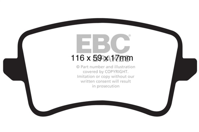 If you simply need a quality OEM replacement pad, look no further than Ultimax. Made in the UK Bristol EBC Brakes manufacturing plant Ultimax is a beautifully engineered brake compound that lasts well, produces minimal dust and is the perfect choice for the urban or daily driver. Why spend more if all you need is a quality replacement pad.The Ultimax pad does include a small percentage of steel fibre to achieve its price point, far less content than our competition where steel fibre content can attain 50 volume and this optimum fibre blend is what makes Ultimax both popular and unique amongst brake blends .Once bedded in Ultimax will inspire confidence in any car light truck or SUV no matter how you drive.Its universal heat range abilities and low rotor wear are additional benefits of the Ultimax pad range which is the EBC worldwide number one selling brake with numbers of sets sold running into tens of millions over the recent years. Unlike many of our performance grades Ultimax has remain unchanged as a pad compound for ten years now, a true testament to its success and customer acceptance. Why change a winning formula.Black coded in the EBC range EBC Ultimax is a fully ECE R 90 approved brake pad range and at its lower price point, less than HALF the price of original parts yet TOTALLY EQUIVALENT by nature of its R 90 brake safety approval, Ultimax offers great value for money and first class driving safety.When replacing brakes of any kind please remember how important brake safety is to your own well being and either have a professional mechanic install your new brakes or if you are a qualified mechanic use the EBC installation DVD as a guide in support of your vehicle owner's manual. These installation guide DVD tasters can be viewed here and the full DVD purchased from online vendors.