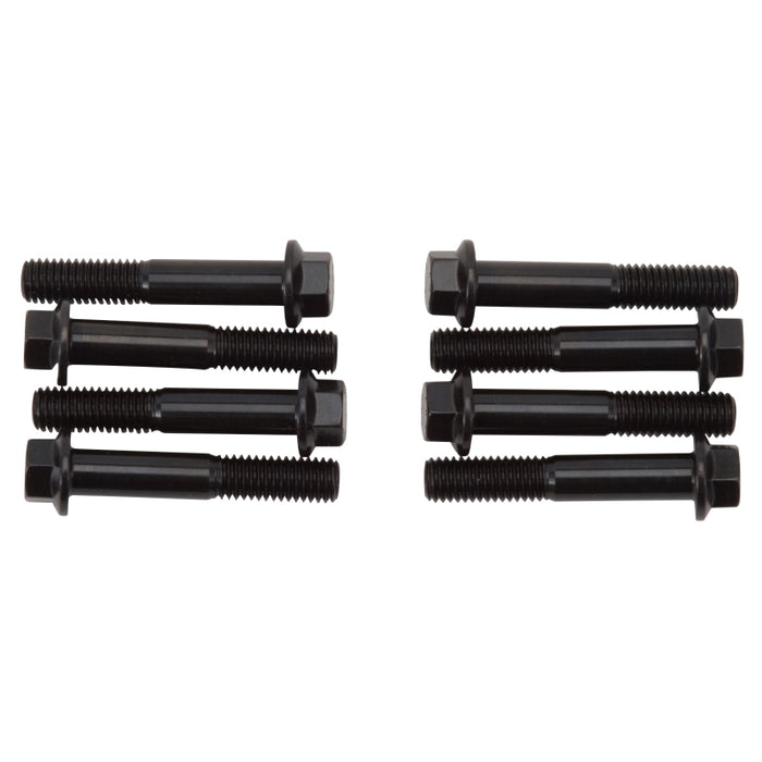 Edelbrock part #8597 Rocker Stud Bolt Kit is recommended for use with the 61969, 61979, and 61989 cylinder heads. The kit contains eight bolts that are shorter than stock for use on the intake rockers so that flow is not obstructed.