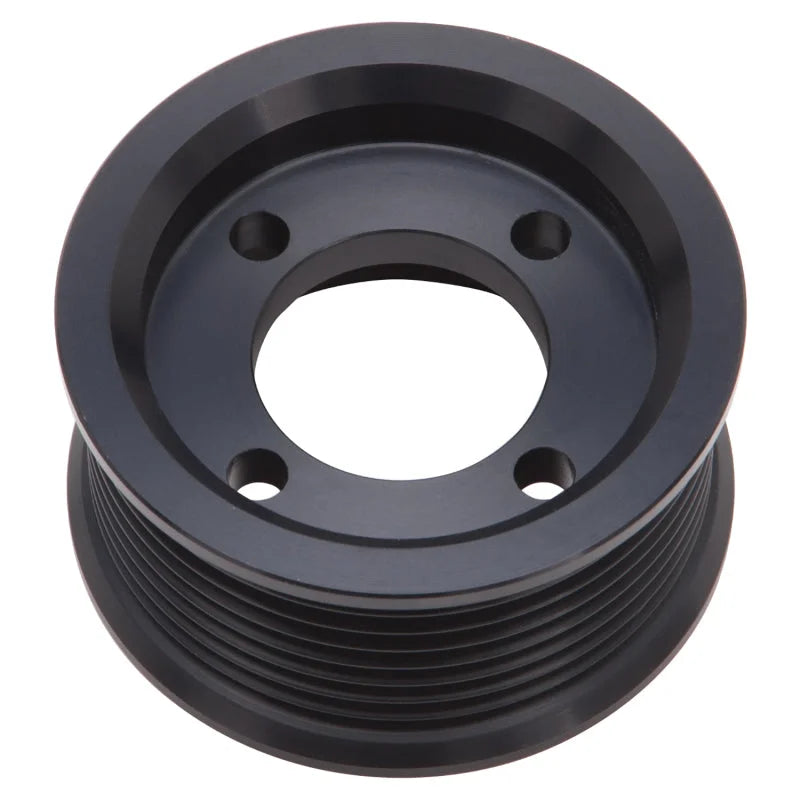 Edelbrock 2.75in. part #15871 pulley allow you to fine tune the airflow and performance of your Edelbrock Supercharger System to your preference. Edelbrock pulley is a 8-rib design for use with any of our Professional Tuner systems. Edelbrock pulley feature a black anodized finish.- 2.75in. 8-Rib Edelbrock's/C Pulley in Black Finish for - Pro Tuner System