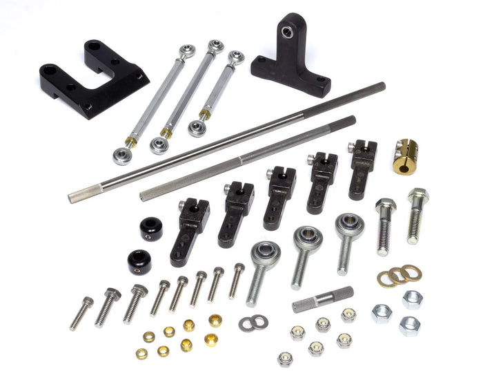 Throttle Linkage - Profiler - Side Mount - Dual Quad - Aluminum / Steel - Black Anodized / Zinc Oxide - Dominator Carburetors - Small Block Chevy - Kit