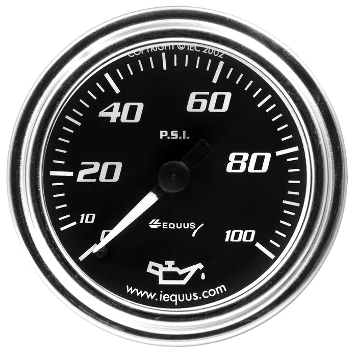 Equus Gauge, Kit, Oil Press, 2" 0-100 PSI, 270 Degree Sweep, Mech, Chrome 7000 Series E7244