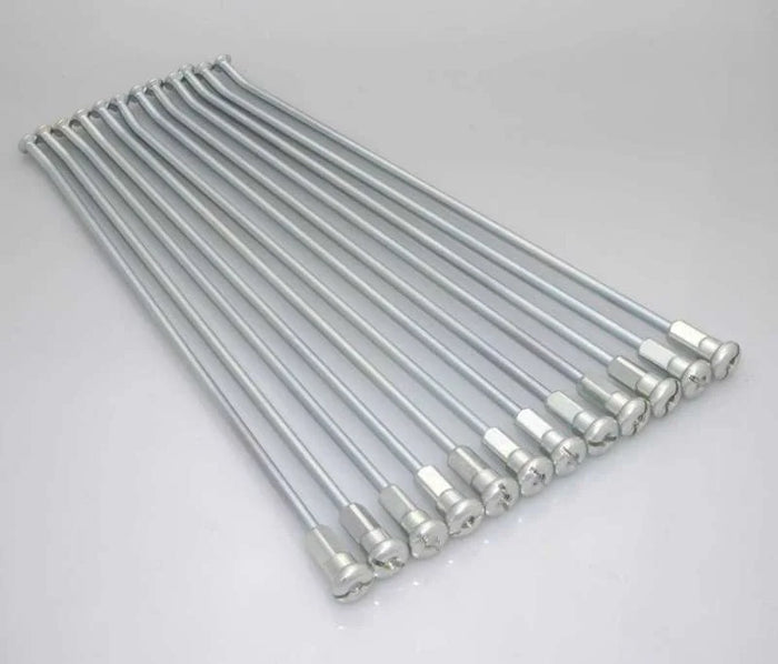 16 highly polished 8-gauge 302 stainless spokes with an average tensile strength 10% higher than OEM spokes