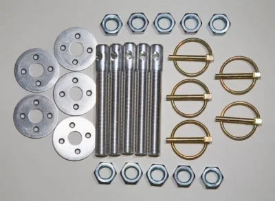 Hood Pin - 0.5 in OD x 3 in Long - 1.625 in OD Scuff Plates - Torsion Clips - Hardware Included - Aluminum - Natural - Kit
