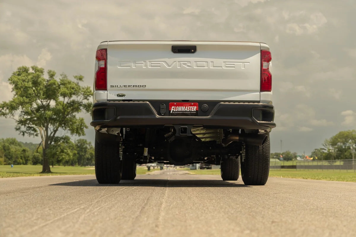Description_MKT | Flowmaster's® FlowFX Cat-Back exhaust system for the 2020-2025 GM 2500HD and 3500HD trucks with the 6.6L gas engines gives you a great way to help you customize your GM truck to your personality. This performance exhaust system fits both 2/4 Wheel drive models and is manufactured from 409 stainless steel for years of trouble-free service and performance. Features include a 3.50-inch inlet pipe leading into a 409 stainless steel Flow FX series "straight-through" muffler for great sound and maximum performance and no drone. The muffler then connects to the factory tailpipe for a simple and effective performance upgrade. Max dyno gains of 11 hp and 10 lb-ft at the rear wheels. This results in better acceleration and towing performance. The system uses all the factory hanger locations and connections for an easy installation that you can do at home. Kits include installation instructions and all necessary hardware. Backed by Flowmaster's Lifetime Limited Warranty. |