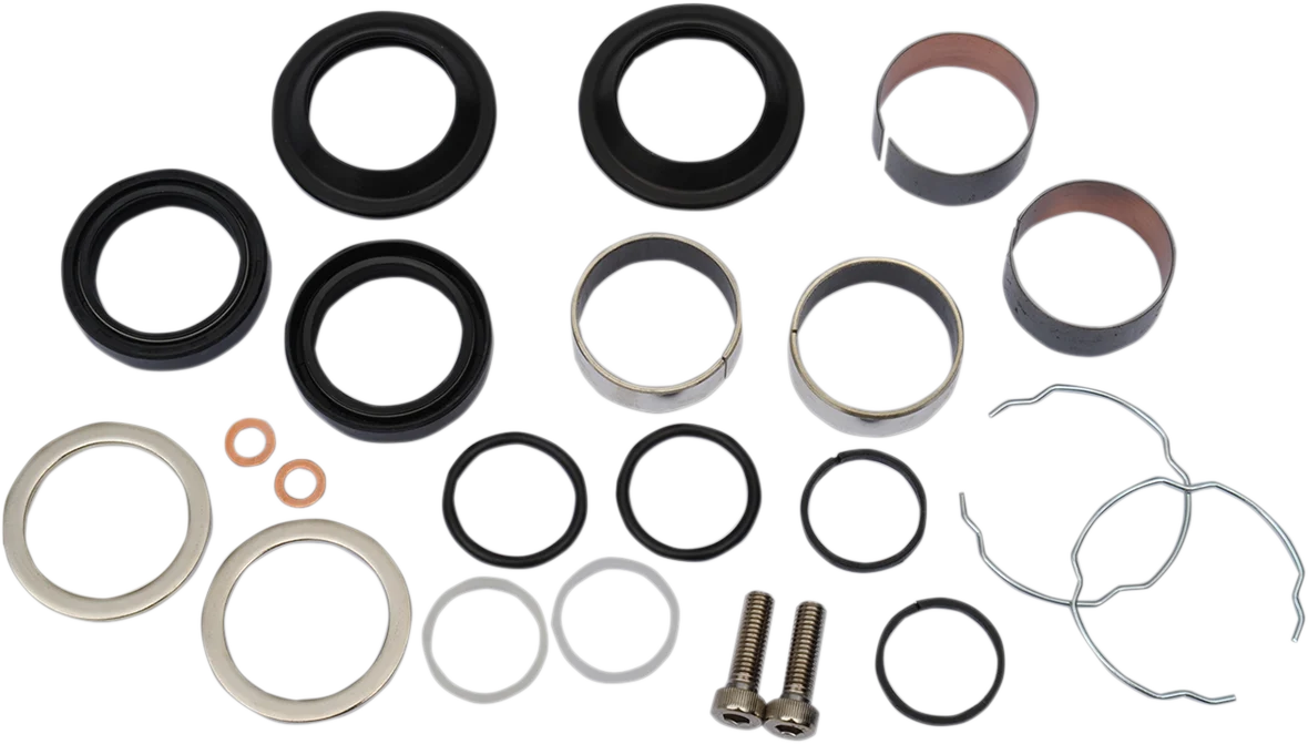 Complete kit, includes all parts needed for complete rebuild of front fork leg assemblies (unless noted).