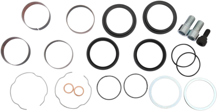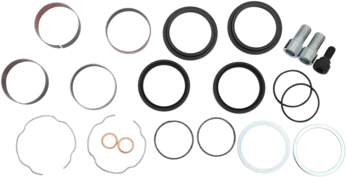 Complete kit, includes all parts needed for complete rebuild of front fork leg assemblies (unless noted).