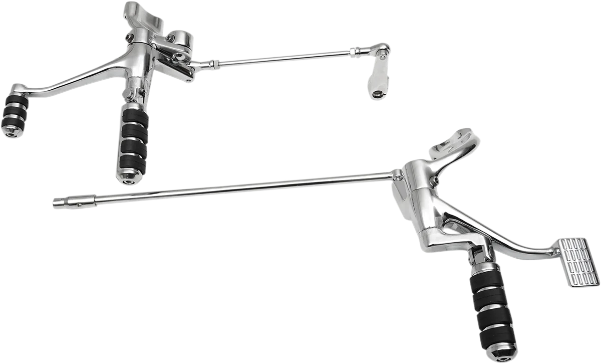 Replace OEM forward controls or convert from mid-controls. Include rubber insert footpegs, shift peg and mounting hardware; use stock brake master cylinder. Not for use with 2-1 exhaust systems.