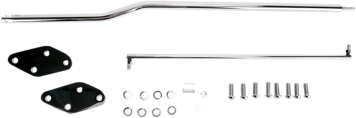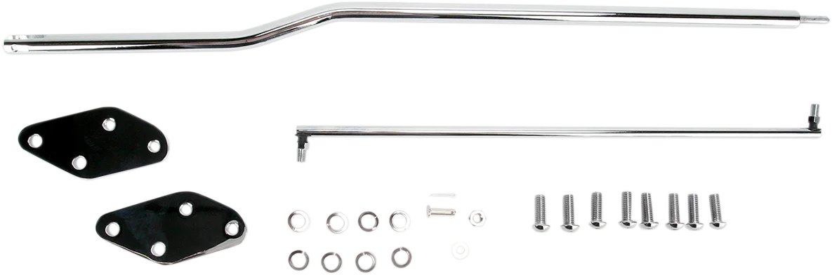 Sturdy steel construction. Polished with a brilliant chrome finish. Use stock rear master cylinder. Includes all necessary mounting hardware. 2" extension kit available separately. -1" relocation kit moves controls rearward approximately 1" for shorter riders; available separately. Male mount footpegs and shift peg not included; use standard pegs to achieve the look you want.. When installing extended forward controls, check front fender clearance before operating..