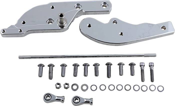 Extends the OEM forward controls 3". Hardware included. An extended length custom rear brake line is required when installing. When installing extended forward controls, check front fender clearance before operating.