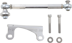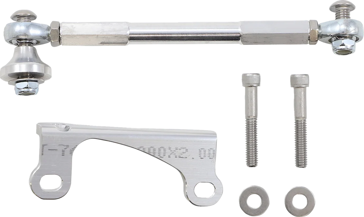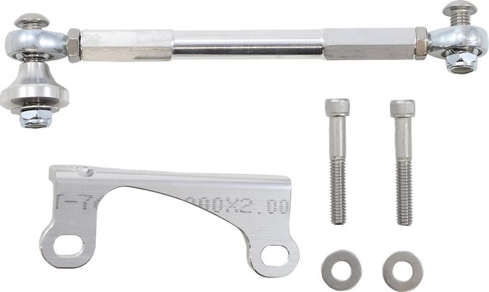 CNC-machined aluminum, stainless steel heim joints and stainless mounting hardware. Prevents frame flex, frame wobble and motor oscillation. Improves handling and overall safety. Top-side design provides for a quicker, easier installation. Works with stock exhaust and most aftermarket exhaust systems. Made in the U.S.A..