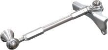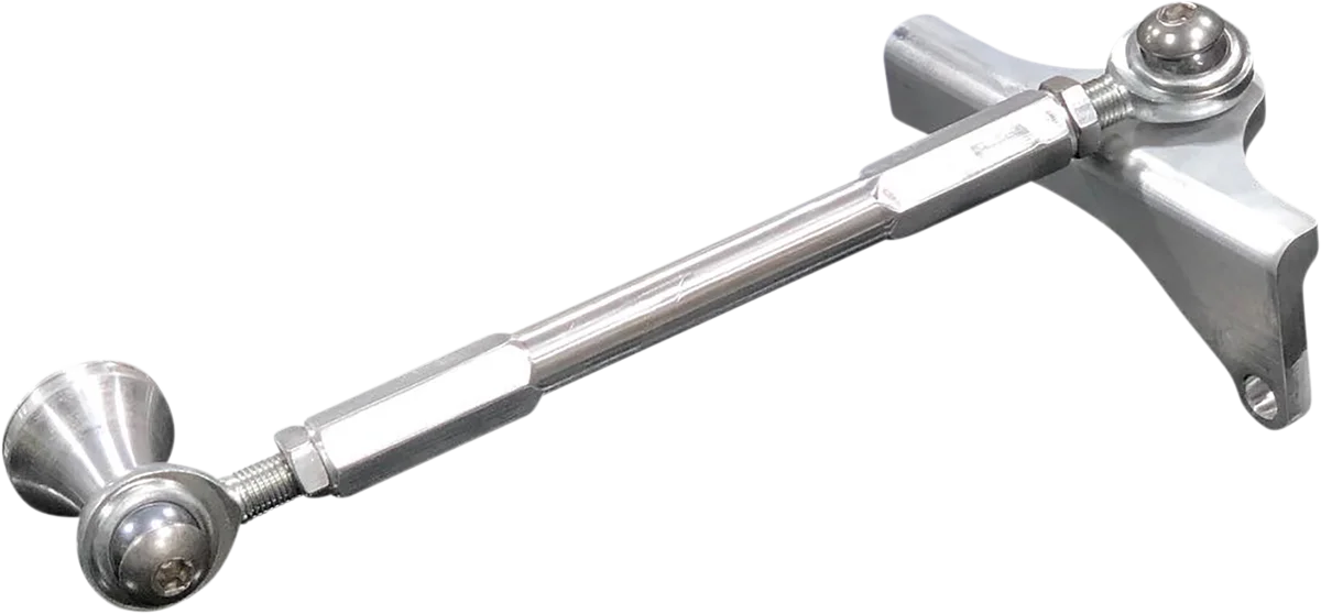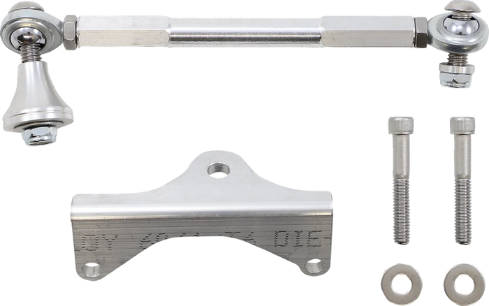 CNC-machined aluminum, stainless steel heim joints and stainless mounting hardware. Prevents frame flex, frame wobble and motor oscillation. Improves handling and overall safety. Top-side design provides for a quicker, easier installation. Works with stock exhaust and most aftermarket exhaust systems. Made in the U.S.A..