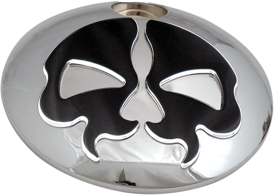 DragSpecialties Fuel Door - Split Skull - Chrome with Black 78051