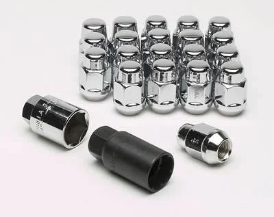 Lug Nut and Lock System - Acorn Bulge - 1/2-20 Right Hand Thread - 16 Lug Nuts - 4 Locks - Steel - Chrome - Kit