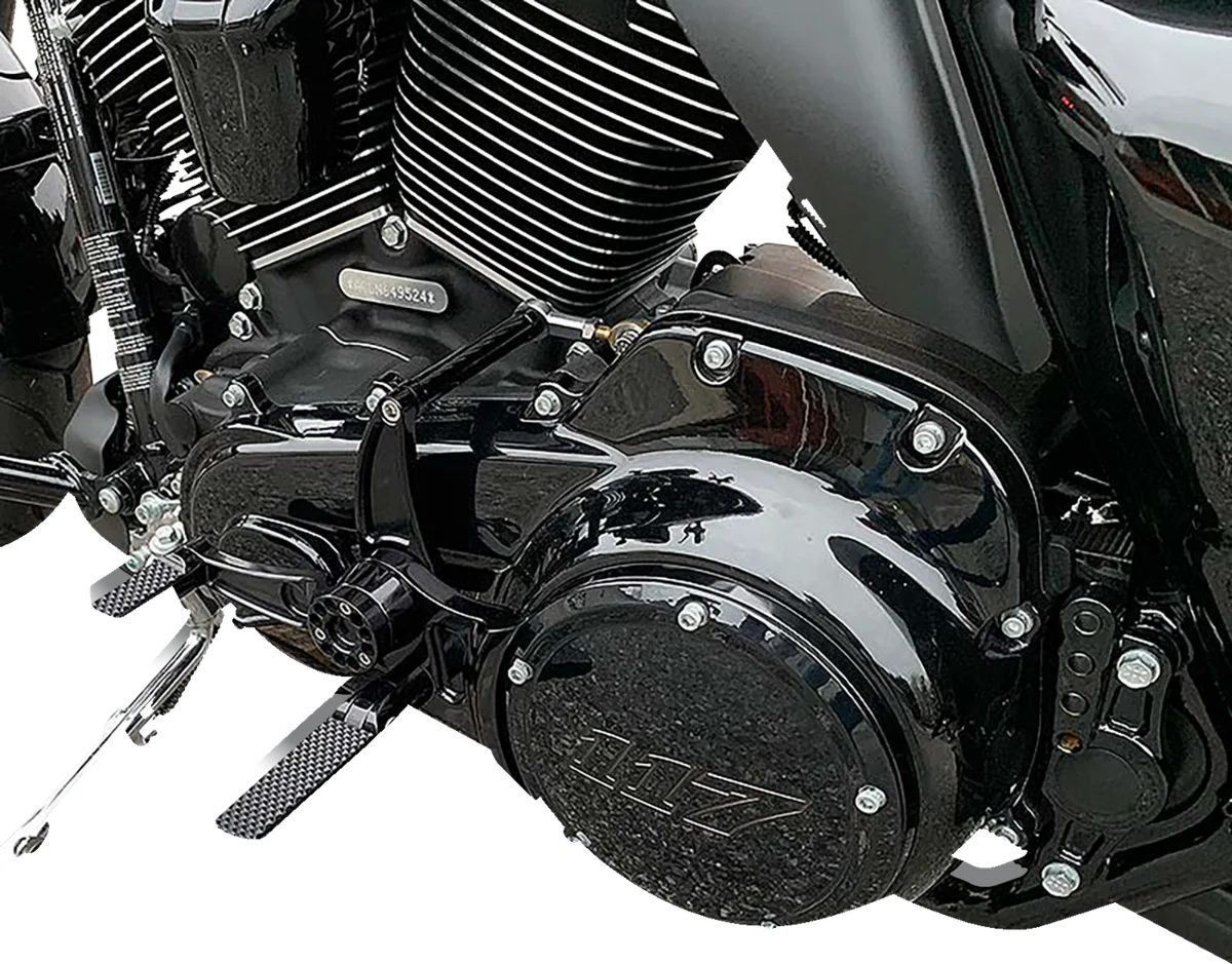 Compact and lightweight custom design eliminates stock or remote mount master cylinder. Fits all 6-speed HD Touring models. Manufactured with 6061-T6 billet aluminum. Shifter side features HHI ball bearing design with stainless steel shaft and multiple-point alignment for quick, reliable shifting. Brake side features integrated brake master cylinder with custom transmission side cover providing compact, efficient installation. Works with both cable or hydraulic Touring bike clutch applications and includes new aggressive HHI custom knurled pegs. Due to the fitment of new mid-control conversion kit, installation is limited by exhaust design; HHI mid controls will not fit any stock or similarly designed exhaust system.. Not for use with Trask turbo kits..