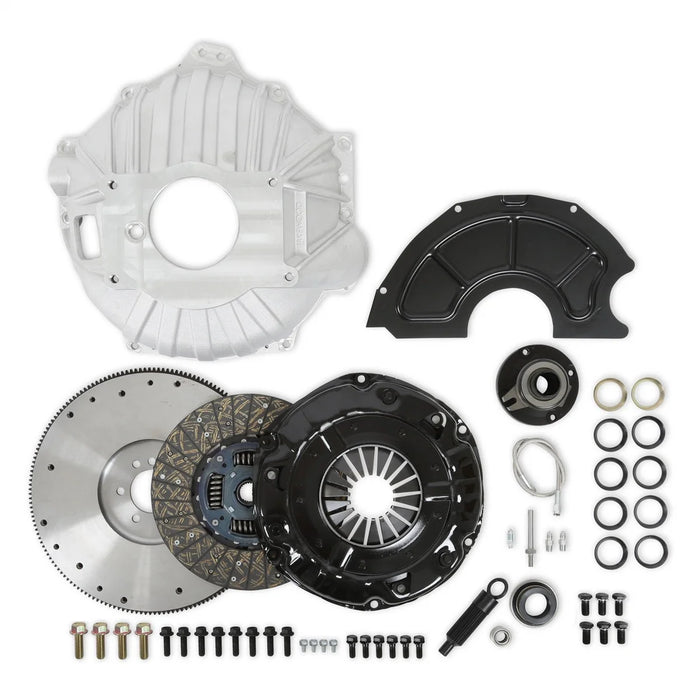| Description_MKT | These Holley Transmission Installation Kits come complete with everything you need to bolt a TKX or TKO transmission to a 1970-1990 454 big-block Chevrolet engine. Built with a mixture of our best brands including Lakewood, Hays and Mr. Gasket. Kit includes: A roller pilot bearing, bellhousing with dust shield, billet steel flywheel, clutch and pressure plate, hydraulic release bearing, and all hardware needed to install these components. |