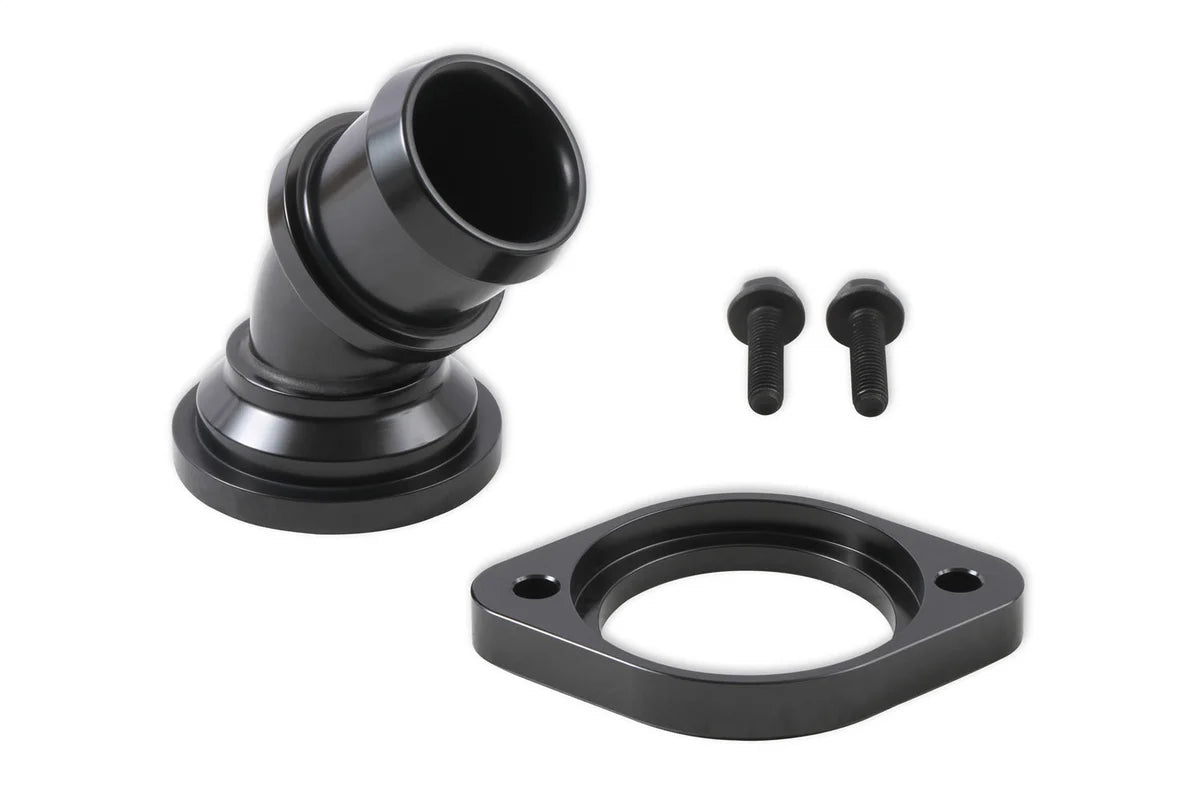 Description_DES | Holley Water Neck - Swivel 45 Degree Angle - Black |