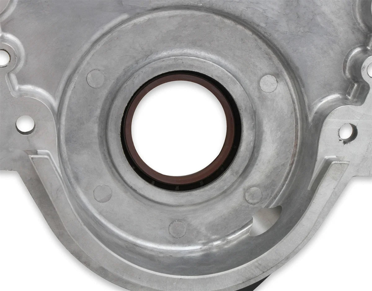 | Description_FAB | Includes over-molded FKM oil seal, virtually eliminating concerns of the seal spinning out at high temperatures, which is common with other aluminum timing covers |
