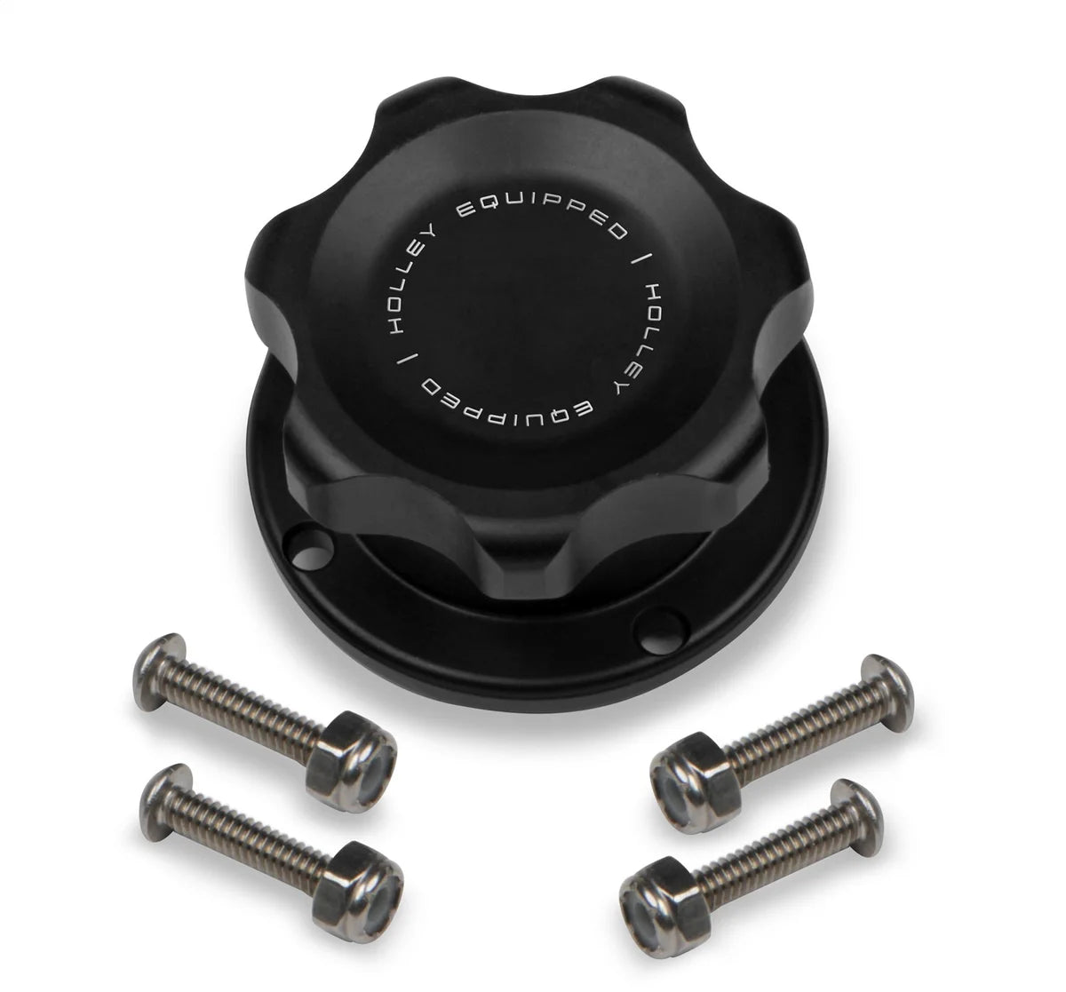 Description_MKT | Looking for an alternative to your stock fuel cell cap or maybe you need a fill cap for that custom oil tank or valve cover you are building? Well, look no further! Holley has created a full line of Billet Fuel Cell Caps and Billet Fill Caps. Holley caps are CNC machined from 6061-T6 billet aluminum and they feature a bright black anodize for great looks and corrosion protection. Each cap features a laser etched Holley Equipped logo so you know it is quality product. |