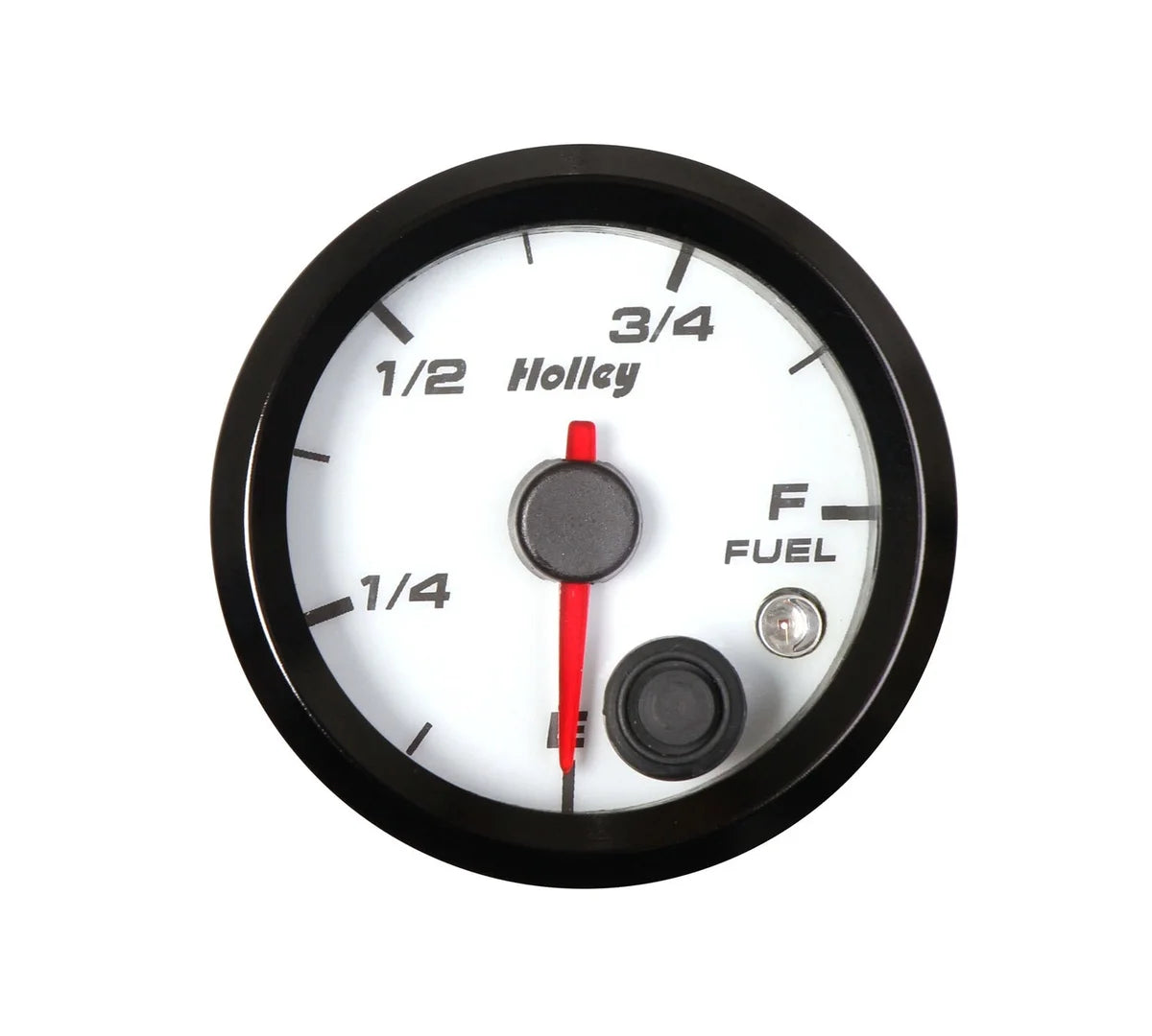 | Description_MKT | Holley's analog-style standalone fuel level gauges give you a simple yet modern way to monitor your fuel level and are fully programmable for a variety of factory and aftermarket sending units. Their slim style mounting requires very little dash space depth for mounting. All of our gauges feature dimmable LED backlighting to ensure you can always see the gauge no matter the environment. Each gauge is tested to insure a top quality and accurate gauge. The Holley gauges are designed for a 2-1/16" opening and available with black face with white lettering or white face with black lettering. |