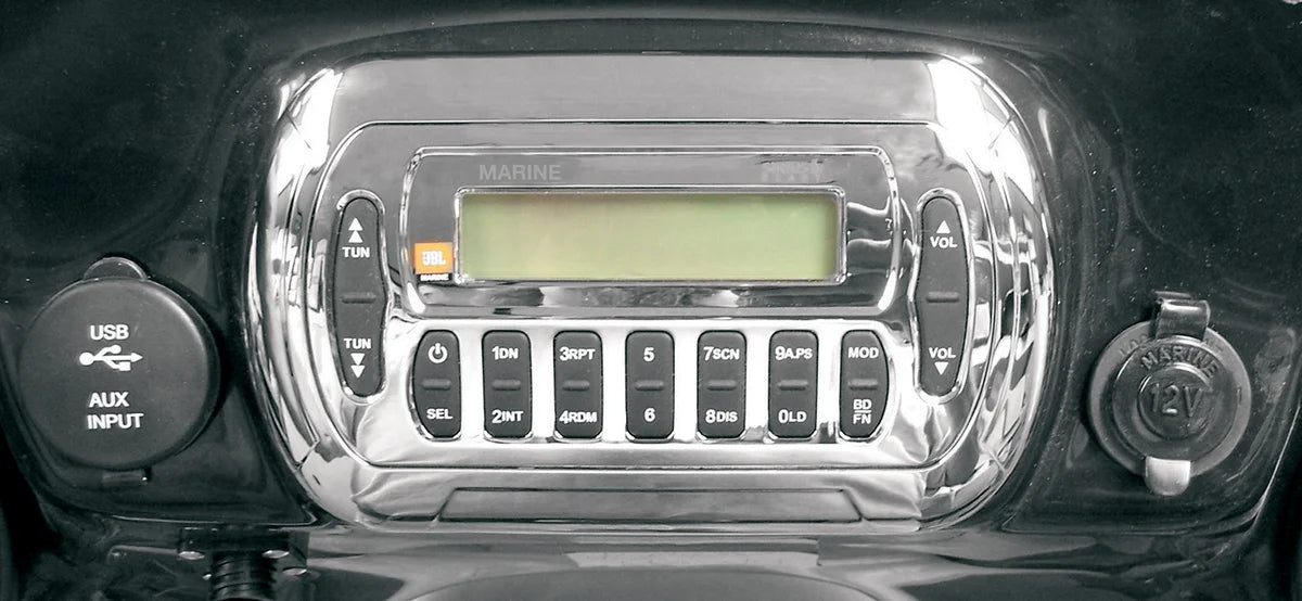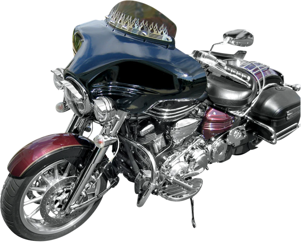 Specially designed to match the size, headlamp and lines that are unique to the Stratoliner. Ball-milled recessed lines on the fairing front match the lines of the Stratoliner's gas tank. Top-quality hand-laid fiberglass construction, gloss black gel-coated and ready to paint. Comes with a Jensen JHD40BT stereo. 3.5 mm auxiliary input with detachable 3' patchcord. USB input port for memory stick devices. 12V power socket for charging and operating accessories. Stereo comes completely assembled with four 5" pre-wired speakers. Concealed, internal antenna for a clean look. Kit includes quick-release brackets to mount on OEM windshield docking points or accessory detachable windshield docking points. Sirius capable. Easy quick-detach connection to bike's electrical system. Includes a 12" clear windshield. Made in the U.S.A..