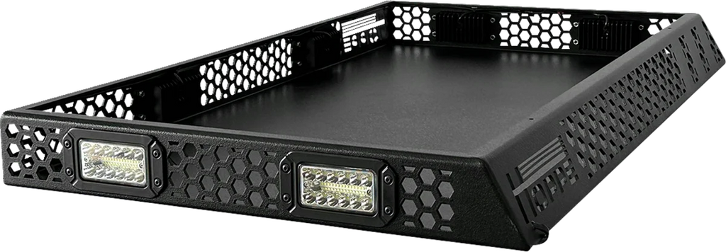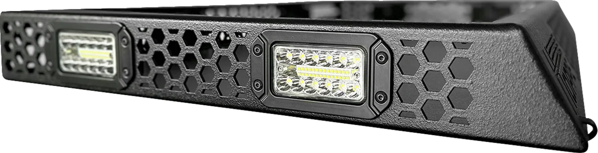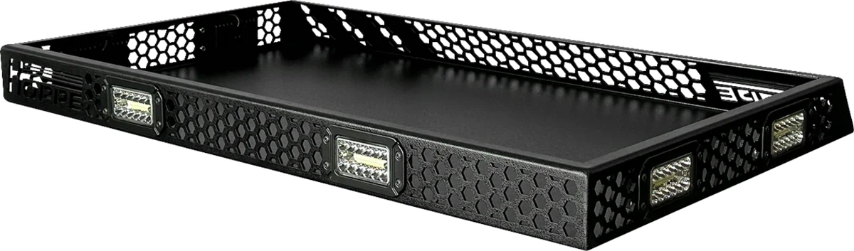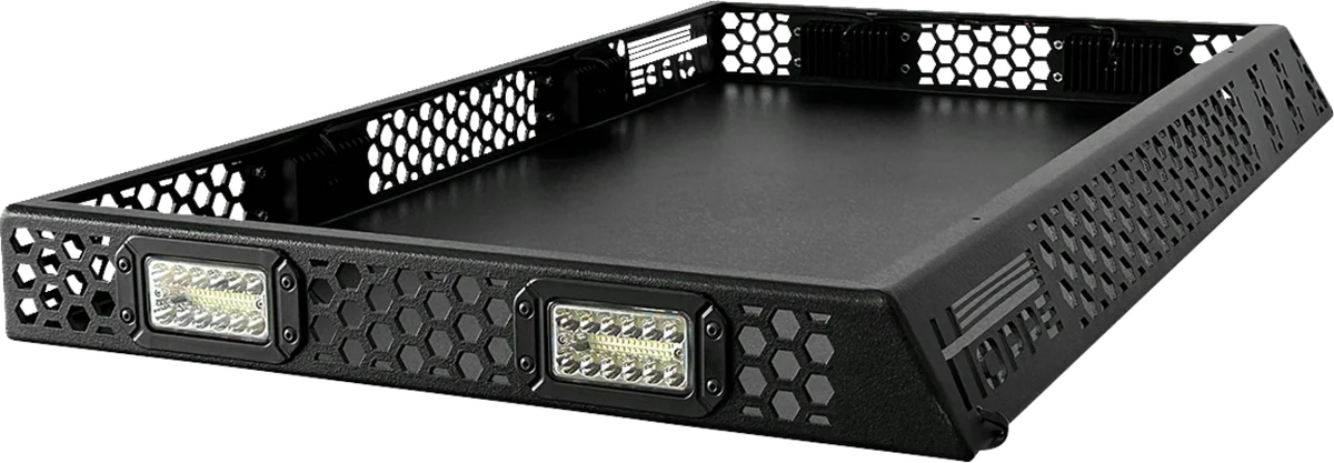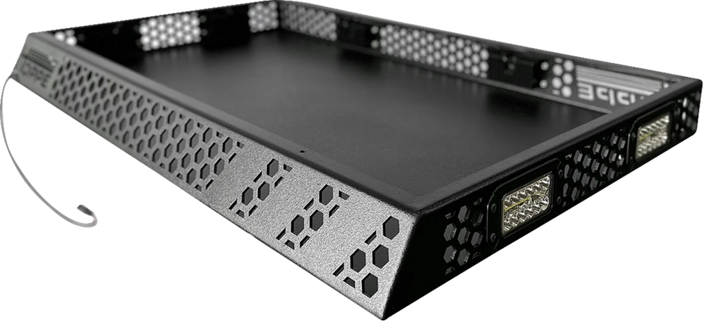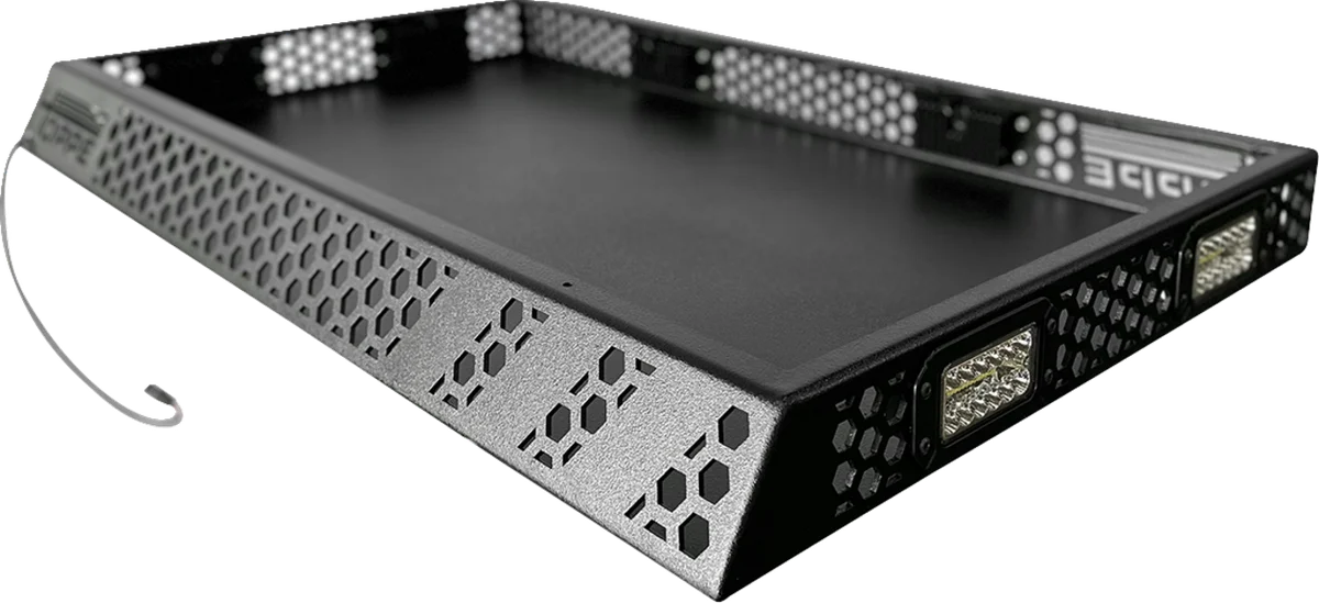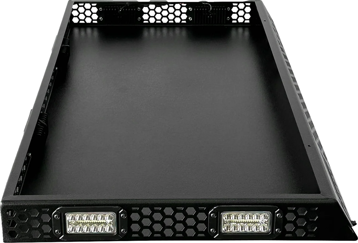 Extends the adaptability of your side-by-side by providing a top-mounted storage area installable on top of either Toy Box cargo bed enclosures or Audio Shade stereo tops. Lightweight, at under 50 lb and designed to maximize overall payload capacity. 100 lb cargo capacity. Wrap-around LED lights for use day or night. Durable aluminum construction that matches Toy Box finish.
