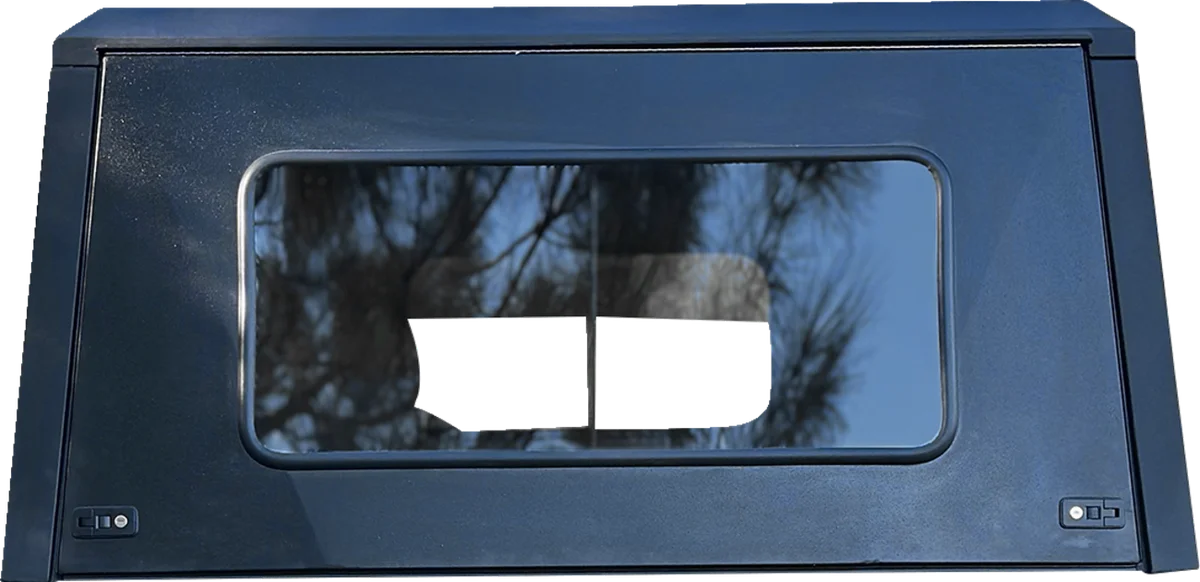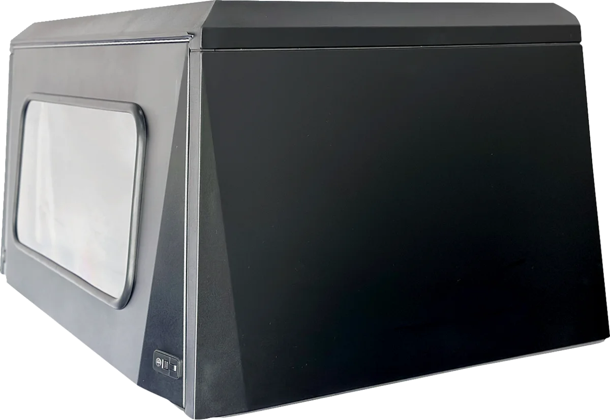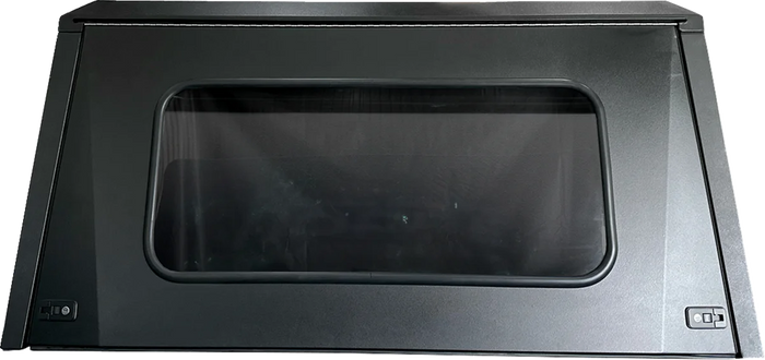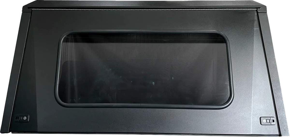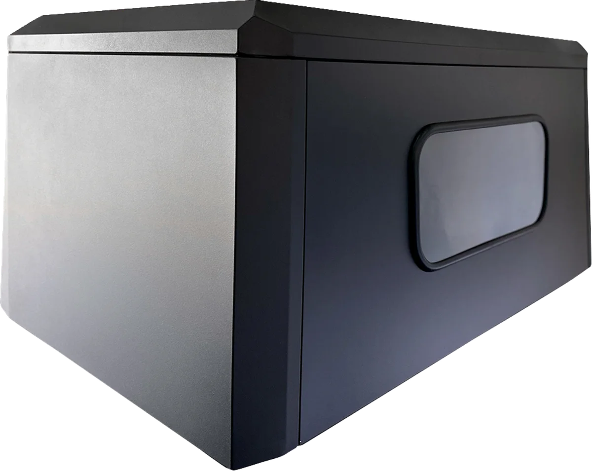 Weather-tight enclosure with weather stripping included. Rust-proof aluminum construction. Bolt-on application. Removable for adaptable use. Flush-mount latches. Convenient dome light with plug-n-play harness. Preserves dump bed function. Hoppe durable scratch-resistant textured coating. Lightweight at 65 lbs for limited impact on cargo capacity. 100 lbs roof cargo limit (with optional Roof Rack).