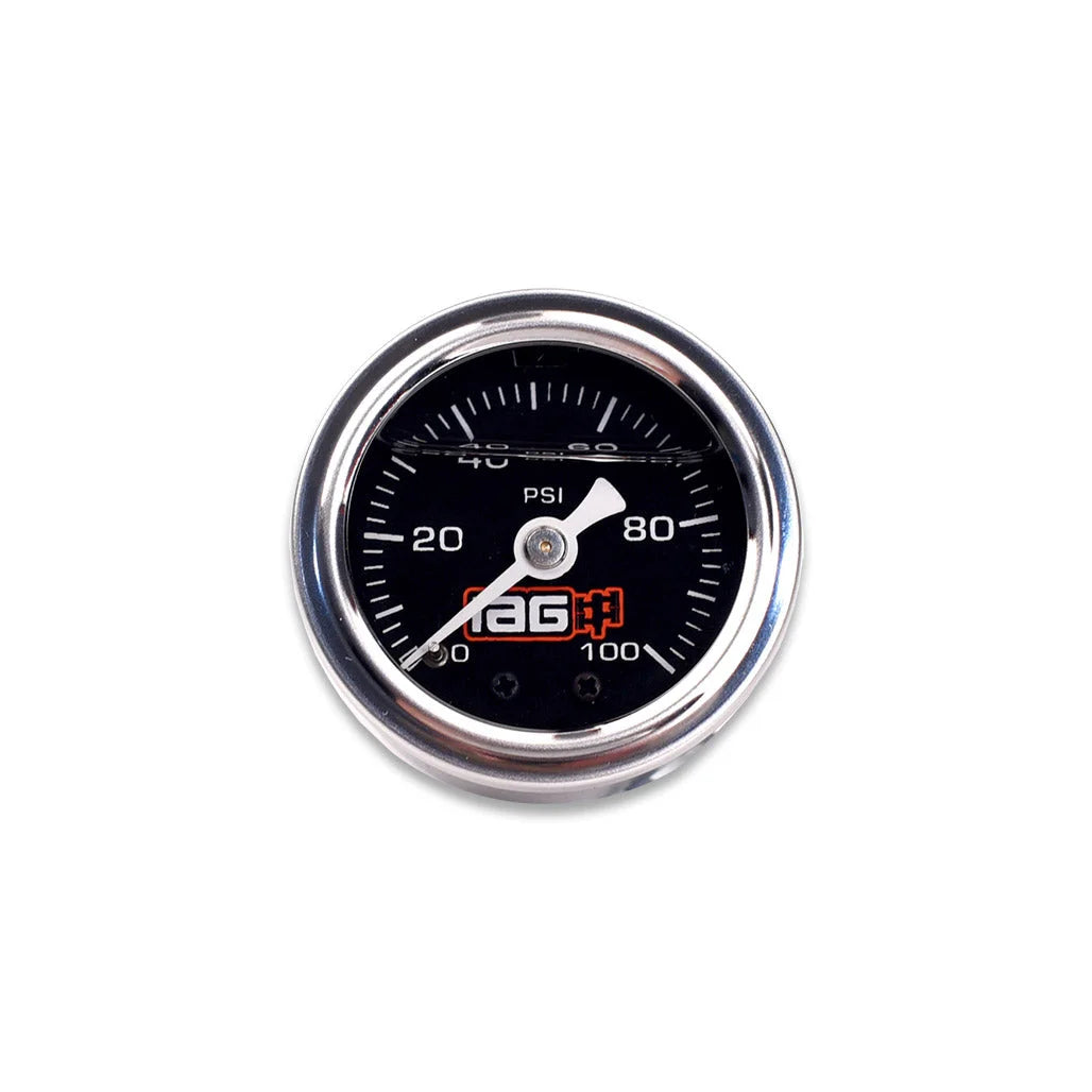 | Description_MKT | IAG's silicone liquid filled gauge is a simple way to monitor and dial in fuel pressure on an adjustable FPR like the Aeromotive A1000-6. The mechanical gauge is constructed of a stainless steel outer case and brass inner parts. Manufactured in the USA it features a black face, displays 0-100 PSI and 1/8 inch NPT center back connection. |