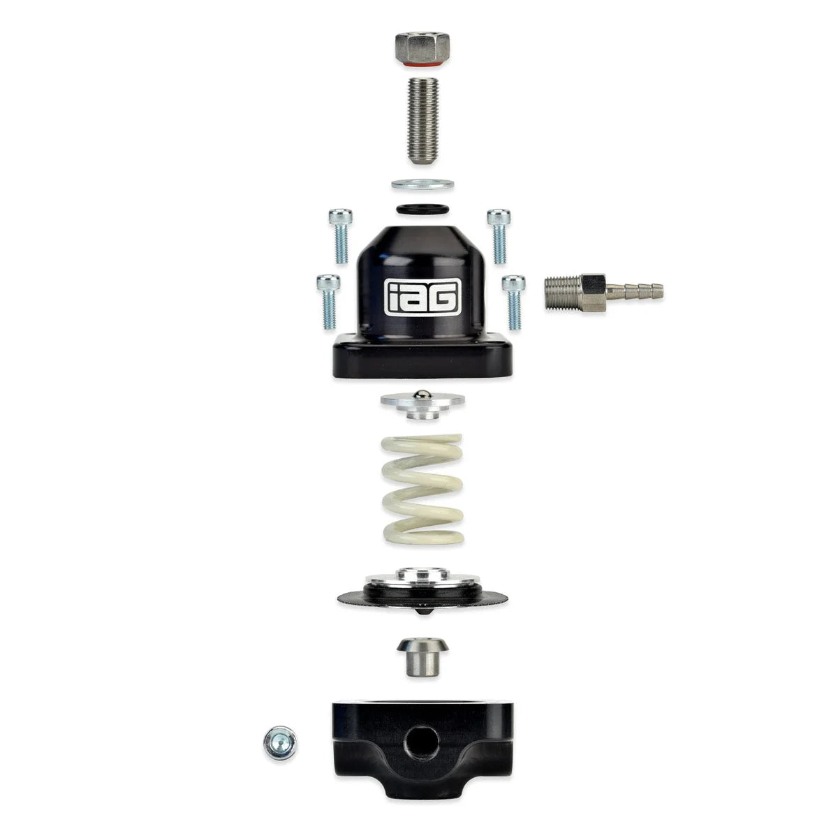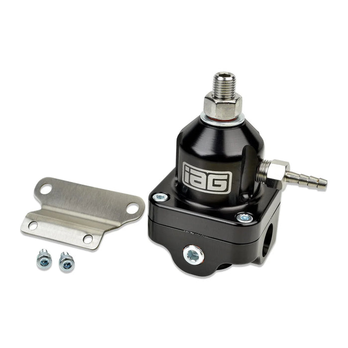 | Description_MKT | The IAG Adjustable Fuel Pressure Regulator is designed and manufactured in our facility in Westminster, MD. The unit features a unique internal stainless seat and stainless ball for durability and strength. The propietary diaphragm is safe for for gasoline and ethanol fuels. The unit features two ORB-06 Inlet/Outlet Ports and one ORB-06 return port (Fittings NOT Included.) This fuel pressure regulator will function in series, parallel, or dead-head configurations and is suitable for engines making up to 900 BHP. The IAG Adjustable Fuel Pressure Regulator features a unique design which is engineered to eliminate leaks from the vacuum/boost reference side of the regulator. The built-in o-ring groove under the pressure adjuster seals against the washer from the bottom. At the same time, the adjustment lock nut features it's own o-ring to seal the threads of the adjuster and prevent boost leaks. The vacuum/boost reference port is 1/8th NPT and comes with a 1/8" barb fitting pre-installed. The built-in 1/8th NPT fuel pressure gauge port comes with a thread plug or optional IAG Fuel Pressure Gauge for setting base fuel pressure. |