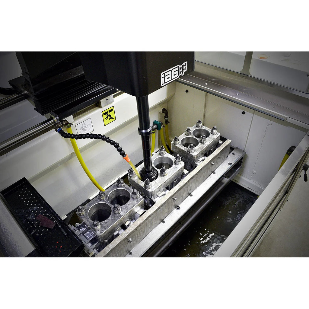 | Description_MKT | It's no secret that the OEM Subaru case halves, or "block," aren't exactly the strongest. IAG has developed a process to greatly improve the strength of the OEM Subaru EJ20 Case Halves to combat the effects of high cylinder pressures brought on by increased power and boost. Our proprietary "Closed Deck" System works by supporting the top of the cylinder in the weakest areas and prevents movement and expansion which can lead to cracks and failures. Despite the additional material supporting the cylinder walls, there is no concerns with overheating or coolant flow because the area around the middle of the cylinder still maintains the same coolant area. The custom IAG closed deck inserts are machined with holes for oil and coolant to pass through the same as stock. The IAG 950 Closed Deck Case takes the strength one step further by adding provisions for our race-proven Fire-Lock™ head gaskets system, along with modifications for 14mm head studs. If you're one of those people who prefer to do your own builds we now offer our legendary closed deck case halves for purchase separately. Simply install your crank, rods, and pistons to your own specifications and be confident that the case halves will take the power and prevent common cylinder wall failures. The IAG Closed Deck conversion is performed 100% in-house by our engineers and experts using state-of-the-art equipment. The IAG Closed Deck starts with a new OEM EJ20 bare case. The case is loaded and fixtured to a 4th axis rotary indexer in our Haas VF4-SS CNC Vertical Machining Center. It is supported by the main journals using a precision ground 2-inch bar and tailstock which ensures the datum is the main journals. This method gives us a true reference point to perform all machining operations. A Rennishaw probe is utilized to check that the case is fixtured true, and once confirmed the machining process begins. |