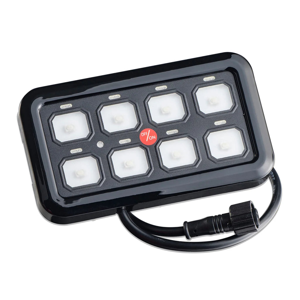 | Description_MKT | The IAG Auxiliary Switch Kit is available in two versions. The bluetooth version features full bluetooth control with an app (iPhone only) to allow hands free operation inside or outside of the vehicle. Features adjustable colors for the interior switch panel. Both versions allow control of up to 8 circuits and features a resettable 60 amp circuit breaker. The IAG Auxiliary Switch Panel Kit features custom black powder coated brackets to make installation easy. The included switch panel features a variety of replaceable decals to customize the appearance and function. Control circuits for auxiliary lighting, compressors, pumps, and more. Each circuit can be clearly labeled with the appropriate decal for easy and clear operation. |