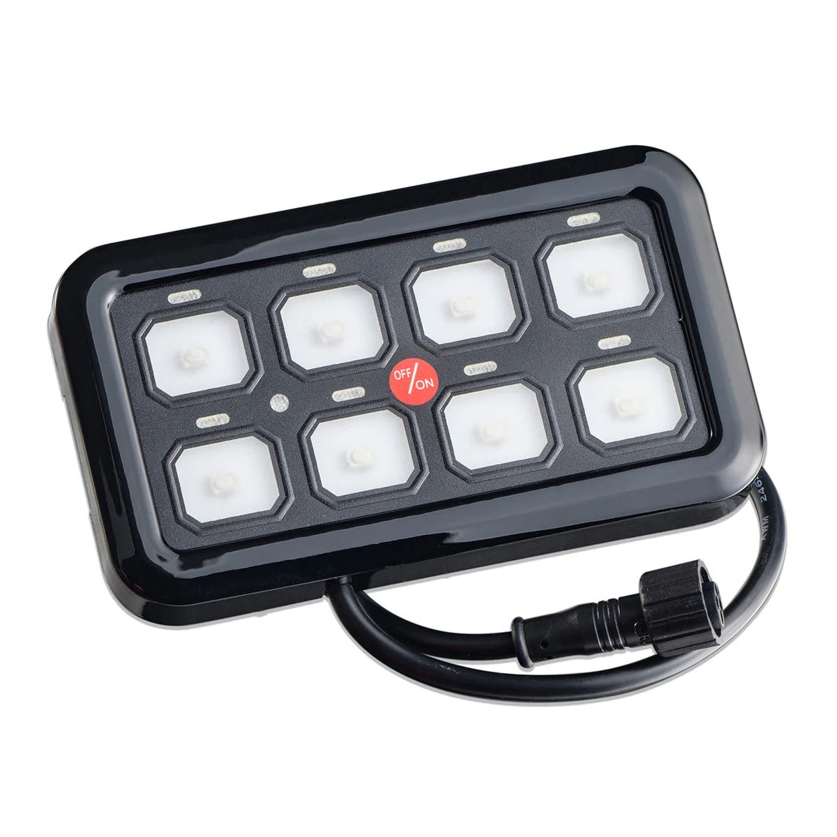 | Description_MKT | The IAG Auxiliary Switch Kit non-bluetooth version control panel features blue illumination to match the vehicle dash. The IAG Auxiliary Switch Panel Kit features custom black powder coated brackets to make installation easy. The included switch panel features a variety of replaceable decals to customize the appearance and function. Control circuits for auxiliary lighting, compressors, pumps, and more. |