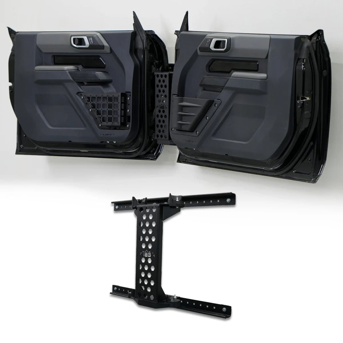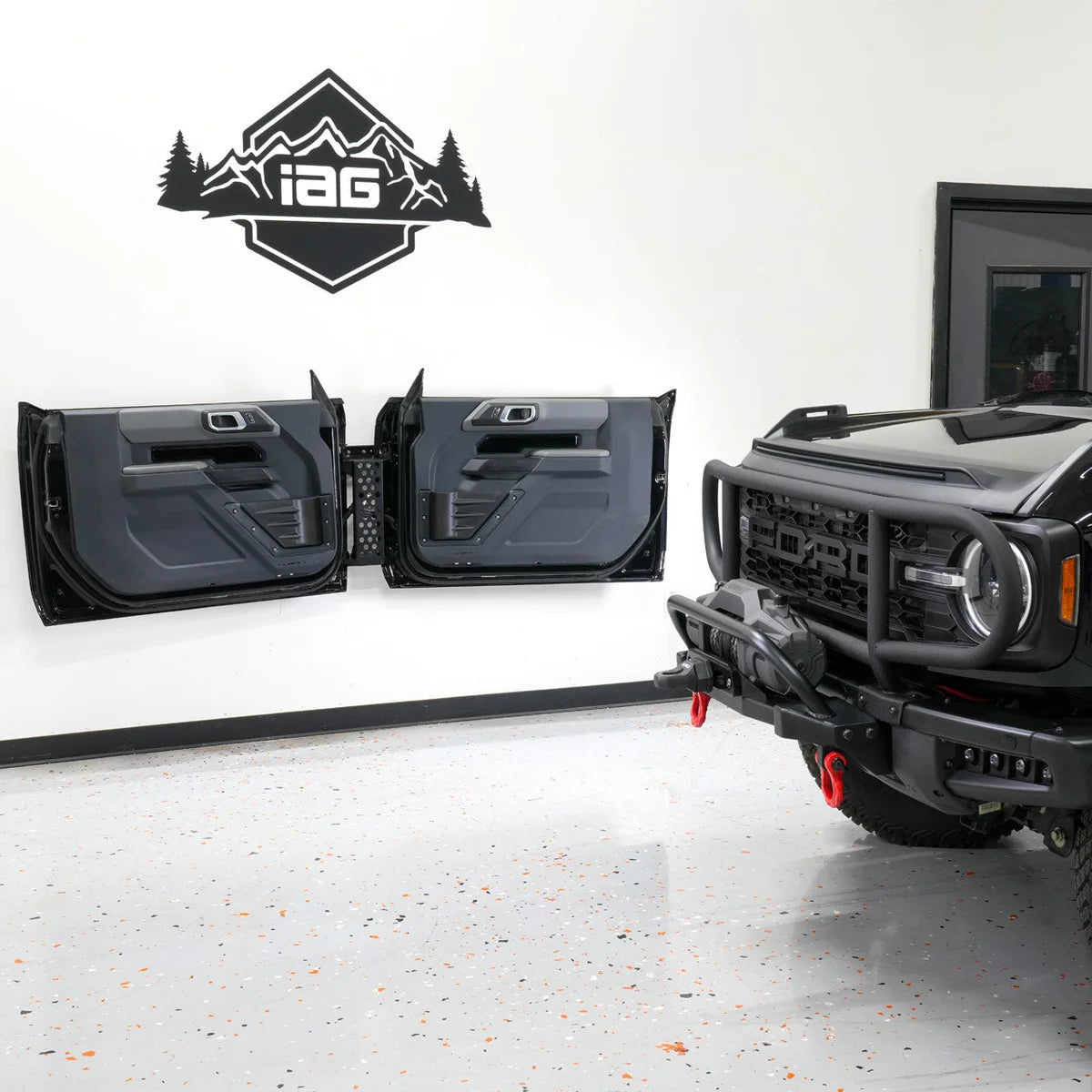 | Description_MKT | Ford designed the 2021+ Broncos to go straight from the showroom to the trail, with features like removable doors to lighten the vehicle and provide greater visibility. The IAG EZ-Guide Door Storage System mounts to the wall of your garage, giving you a safe place to hang your Bronco doors when they’re not in use. IAG’s Door Storage System protects your doors from potential dents, dings and scratches by keeping them up off the floor where they can get knocked over or bumped around. This space-saving system doubles as a storage solution for your IAG I-Line tube doors, which can be stored out of the way during the winter months when you're using your OEM doors. We offer hangers for two & four door model front doors, four door model rear doors, or a four door front and rear door combo kit. The IAG EZ-Guide Door Storage System is constructed of heavy-duty steel and has a durable black powder-coated finish that is resistant to corrosion and scratches. The IAG EZ-Guide Storage System keeps your doors stored with the exterior paint safely facing the garage wall, so you won’t have to worry about mishaps with bikes or kids. IAG’s Storage System was designed so that you can remove the door and place it directly into the EZ-Guide Storage System without having to set it down on the floor to reposition it for mounting. |