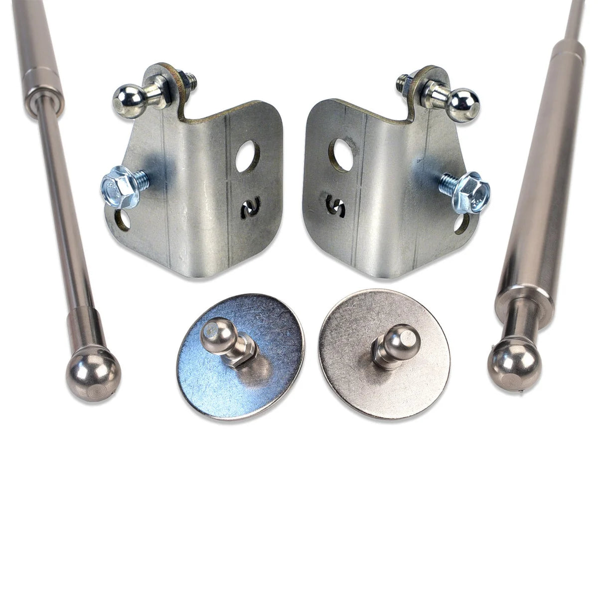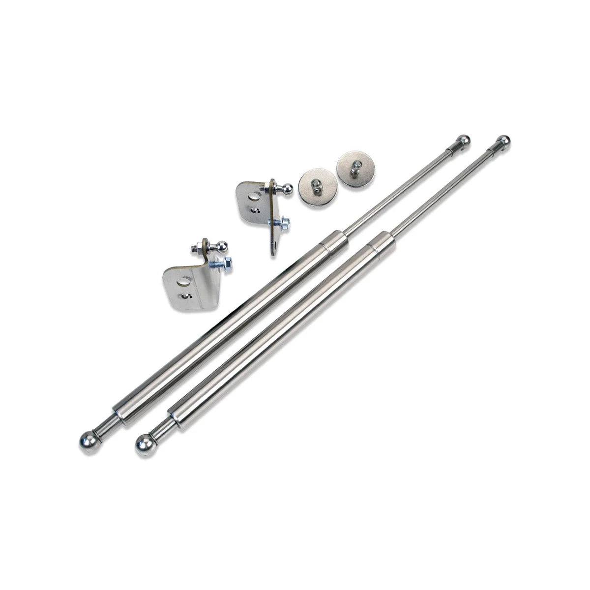 | Description_ASC | Includes: (2x) Gas Hood Strut Stainless Steel Finish, (2x) CNC Laser Cut Stainless Steel Mounting Bracket, (2x) Stainless Strut Mounting Hardware & Washers. |