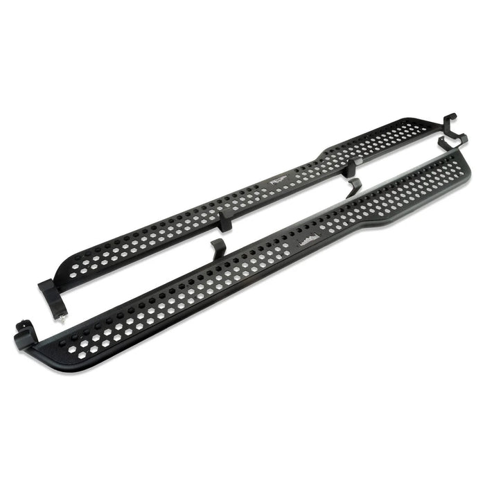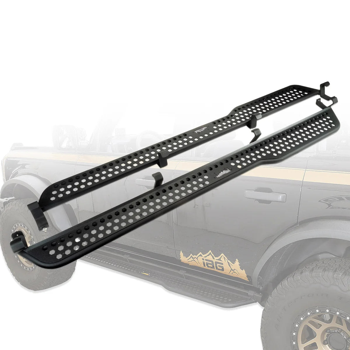 Description_MKT | Stepping in and out of the new Ford Bronco can be a bit of a challenge for some, especially if the vehicle has been lifted. Whether you or one of your family members need a little boost, the IAG EZ-Step System provides just the solution to make getting in and out easy. The EZ-Step Full Length Bronco Side Step System is designed to mount to the OEM Ford rock rails found on many 2021 through 2023 Bronco models. The full-length design matches the length of the OEM rock rail and provides a wider section for rear passenger entry. The simple two-bolt installation takes a few minutes and does not require drilling or cutting. |