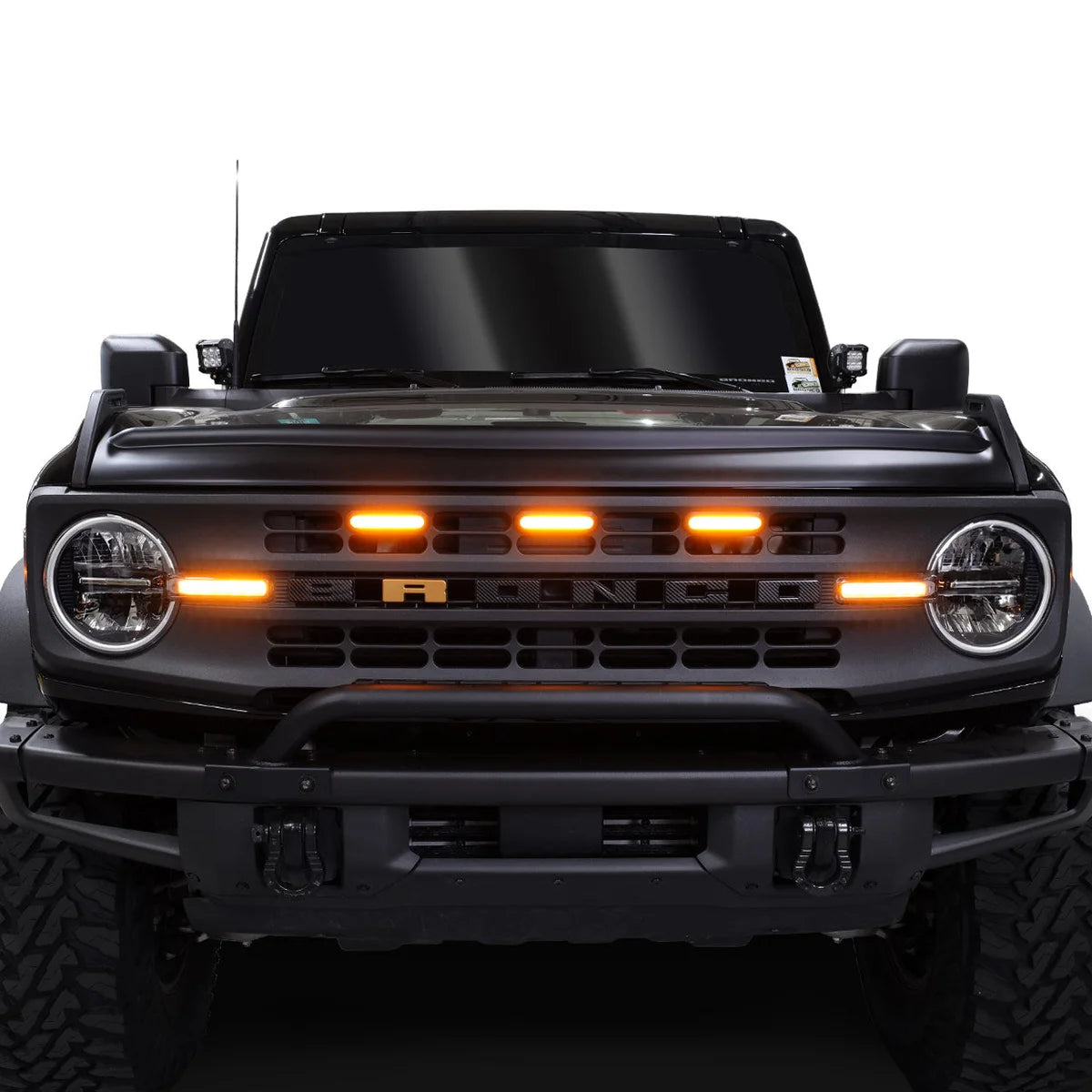 | Description_TLE | IAG I-Line 3pc Amber Grille Light Kit for 2021+ Ford Bronco Base and Black Diamond (NOT Bronco Sport) |