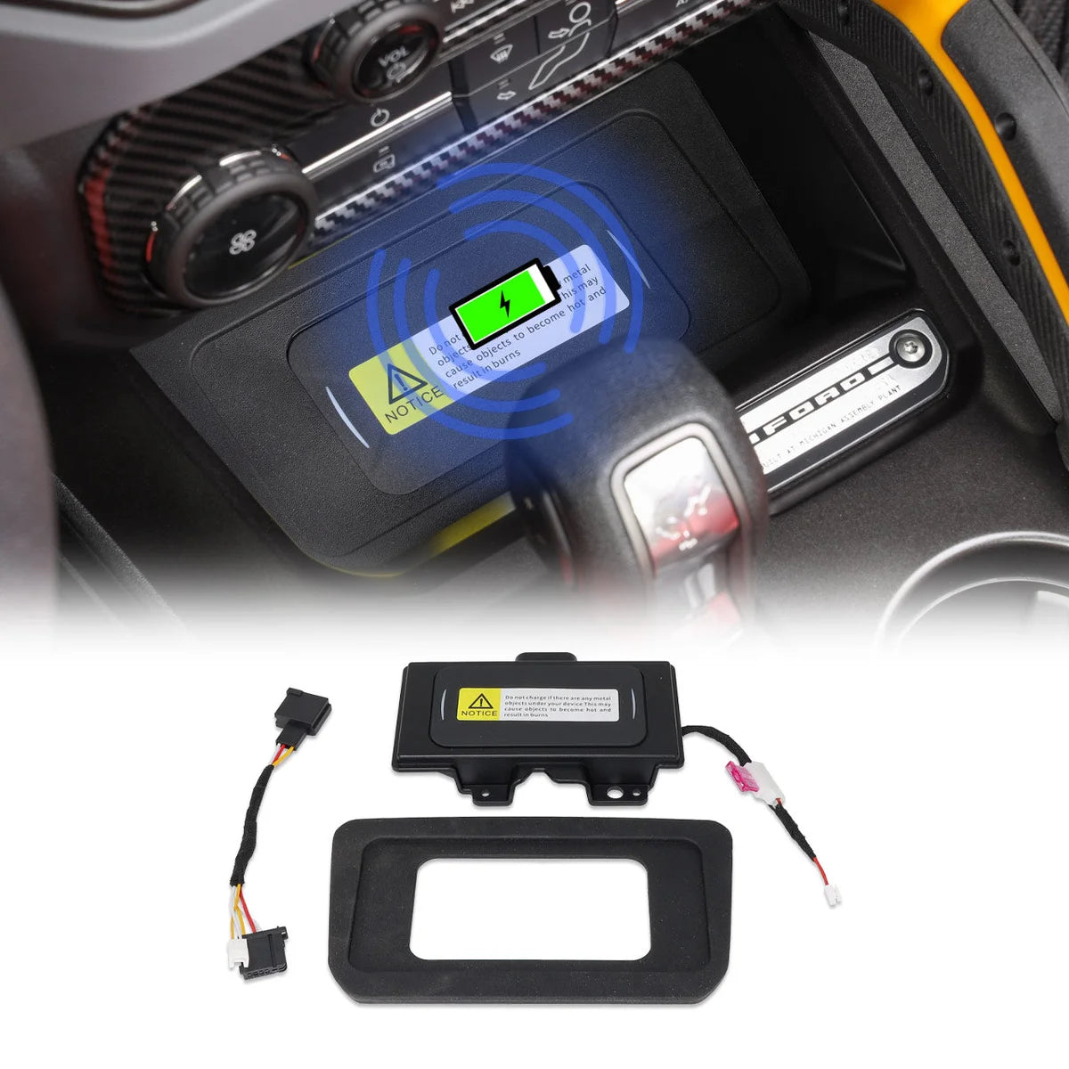 | Description_MKT | One of the most convenient features available in a Bronco is Wireless Charging. The IAG I-Line Wireless Charging Pad installs easily in the front storage area of your LUX equipped automatic Bronco’s center console and provides a convenient, non-slip, wireless charging station for your phone which charges 2x as fast as the stock charger. Rated at 15W max, this wireless charger is designed to quickly charge most modern phones designed for wireless charging. If your Bronco was not optioned with the LUX Package the required center console is available separately from Ford (Part number M2DZ-78044D90-DA). |