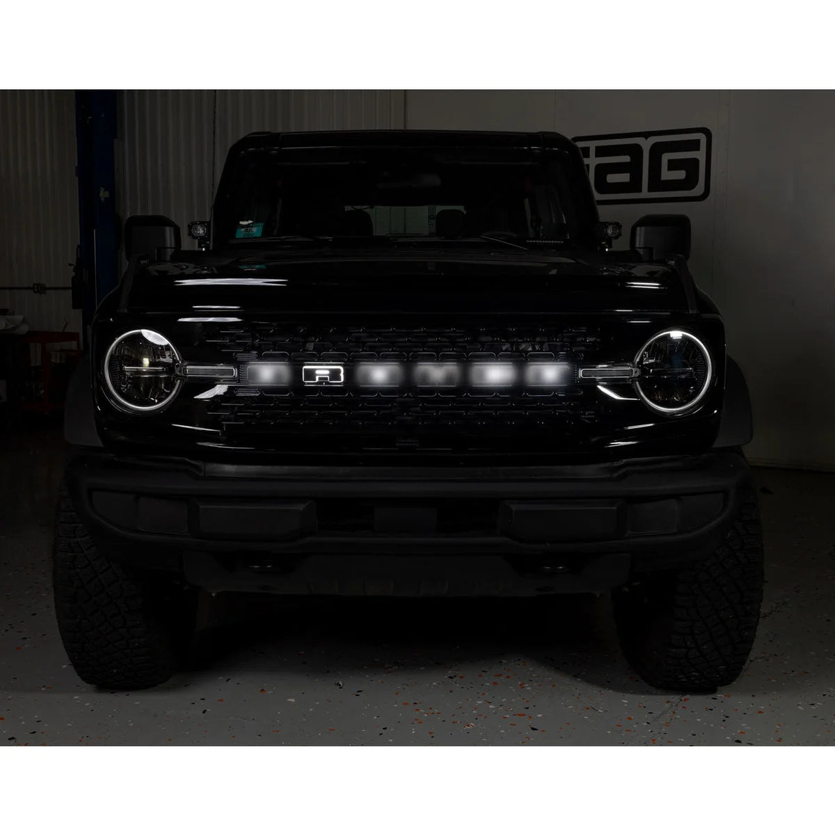 | Description_TLE | IAG I-Line Grill Black Letters with White Back Lighting for 2021+ Ford Bronco (NOT Bronco Sport) |
