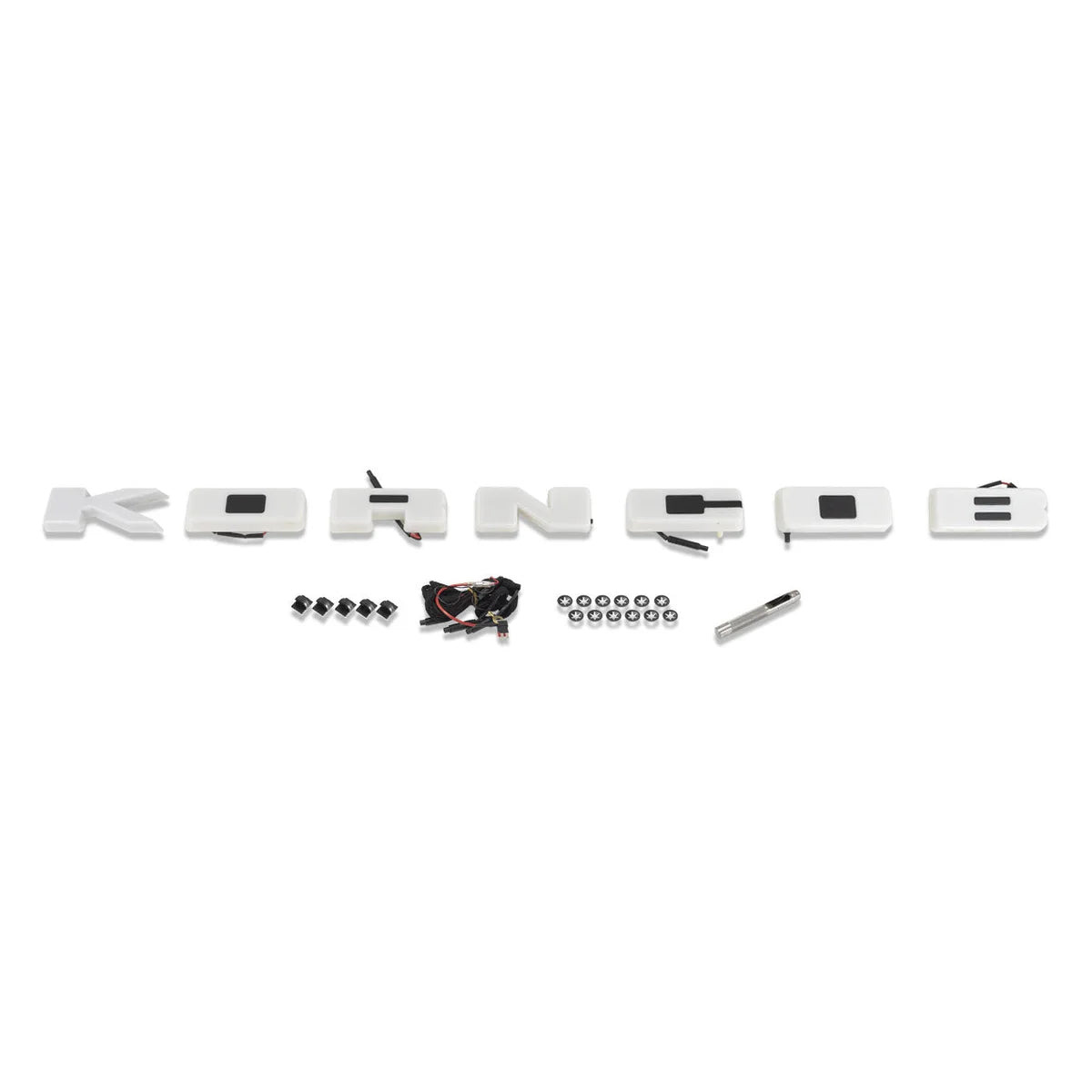 | Description_MKT | The IAG I-Line Illuminated Grille Letters fit perfectly in the grille of your Bronco. The bright LED lights improve visibility at night. Constructed of ABS plastic, these grille letters are weatherproof, strong, and durable. The grille letters feature white illumination and are designed to completely replace the OEM letters. The white light perfectly outlines the white letters for a custom look. |