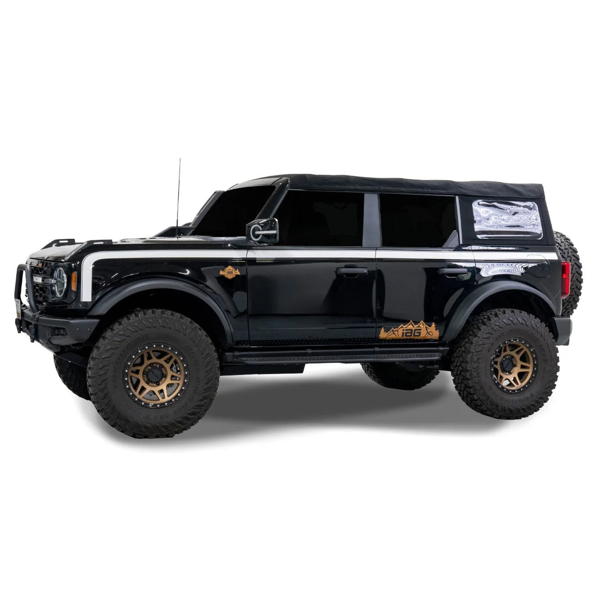 | Description_TLE | IAG Off-Road Boss Style Vinyl Side Stripe Kit fits 2021+ Ford Bronco 4 Door (NOT Bronco Sport or Bronco Raptor) - Gloss White |