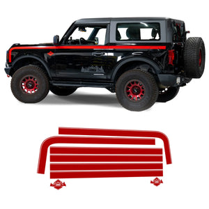 | Description_EXT | IAG Off-Road Boss Style Vinyl Side Stripe Kit fits 2021+ Ford Bronco 2 Door - Red |