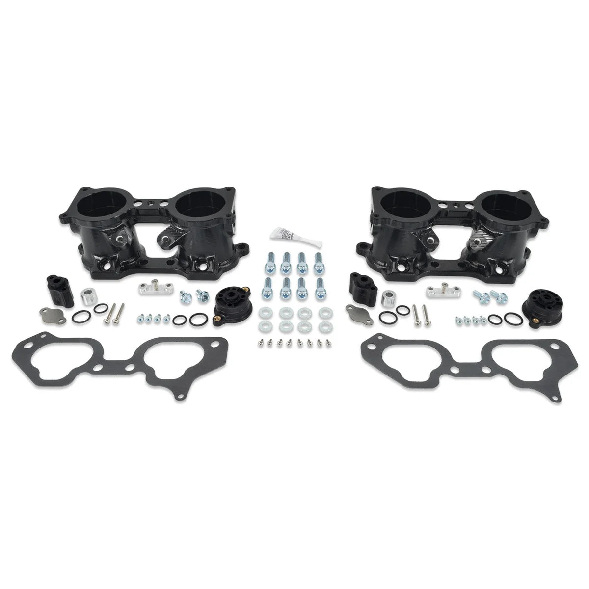 | Description_MKT | The OEM Subaru intake manifold features “Tumble Generator Housings,” which are designed to “tumble” the airflow on cold starts. Once the cold start process is over, the butterfly valves in the housings remain in the open position and don’t restrict flow much. This means that there are airflow gains to be had, even with the butterfly valves in place. We’ve completely redesigned our popular TGV housings with new port shapes to further improve airflow and allow for the OEM emissions equipment compatibility. We’ve seen gains of 5 WHP over our V2 TGV housings, and 13 WHP over stock housings. The IAG V3 Top Feed TGV Housings are CNC machined in house from 6061 aircraft grade aluminum. Finished in natural silver, or anodized black, the TGV housings look great in the engine bay. Designed to work with all popular aftermarket or stock injectors, the housings can be used for all levels of builds and will provide increased horsepower even in stock vehicles. Our innovative design allows the housings to be used with different upper manifold bolt patterns. The custom injection molded fittings allow for installation of the OEM motors, shaft, and butterfly valves. |