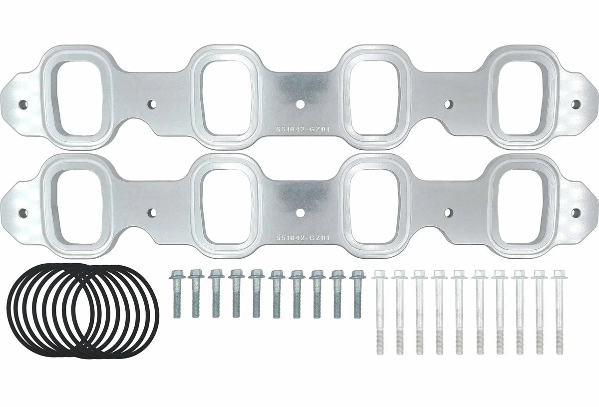 Intake Base Plate and Riser - 1/2 in Thick - O-Rings / Hardware Included - Aluminum - Clear Anodized - Ford Godzilla - Pair