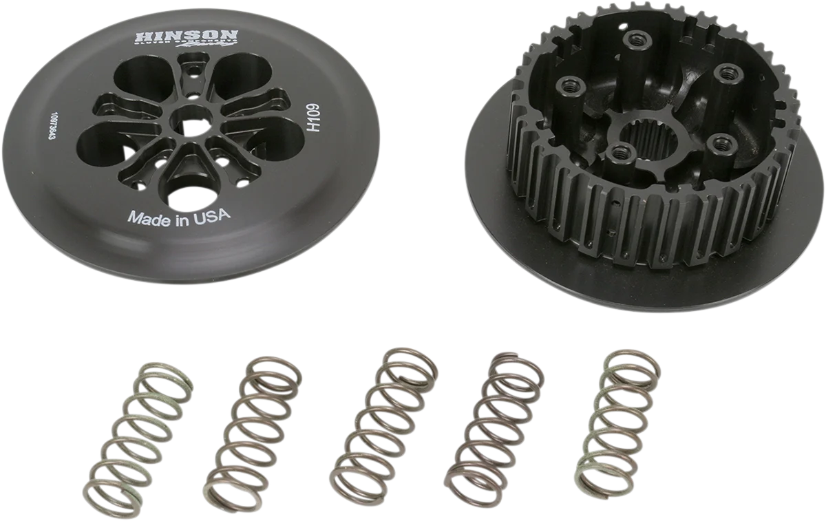 Precision machined from T-6 billet aircraft-quality aluminum to aerospace tolerances, and Akadized for five times the wear resistance to stock (with proper maintenance). Improves clutch performance and life. Improves heat dissipation. Allows clutch assembly to spin truer, creating less heat when clutch is disengaged. When used with Hinson Clutch Components clutch basket and inner hub, helps eliminate clutch chatter.