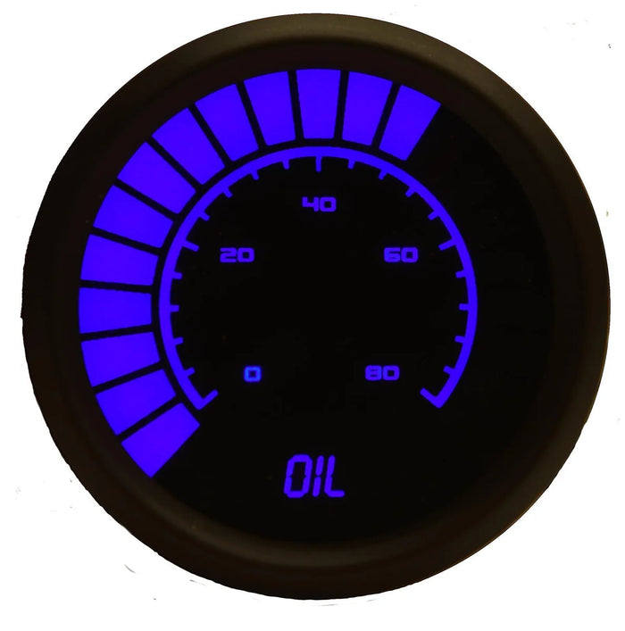 Oil Pressure Gauge - Bargraph - 0-80 psi - Electric - Digital - LED - 2-1/16 in Diameter - Black Face - Blue LED - Each